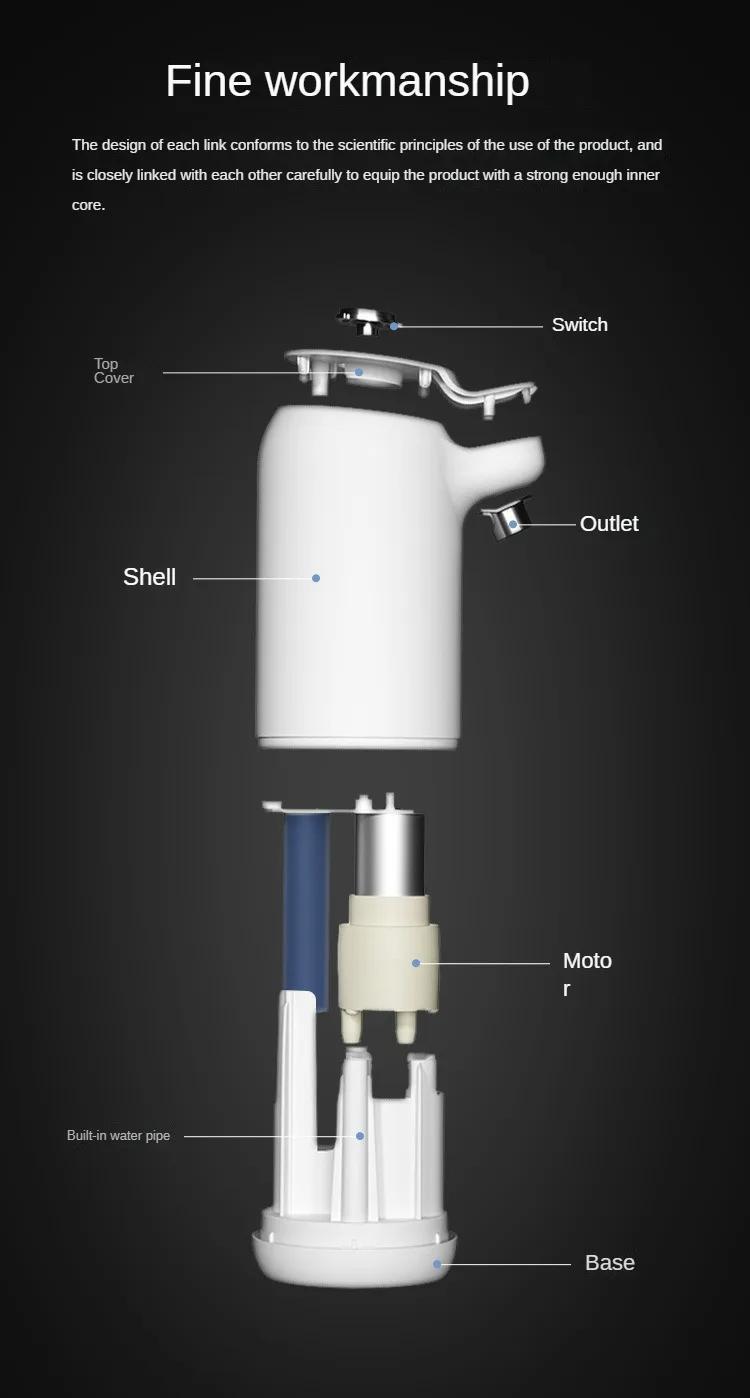 BALASHOV Elektr suv shishasi nasosi USB orqali zaryadlanadigan batareya bilan, 7.57-18.93 L idishlar uchun mos, uy, oshxona, ofis, yashash xonasi va sayohat uchun mukammal.