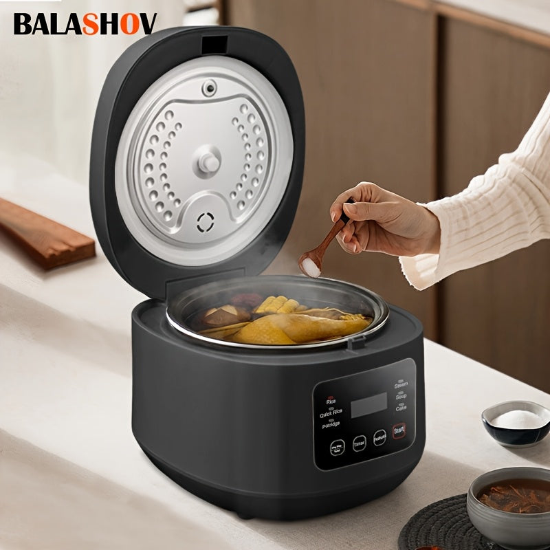 Balashov EU plug 3L aqlli guruch pishirgich 3-5 kishi uchun, 6 ta pishirish funksiyasi, 24 soatlik bron qilish va issiqlikda ushlab turish funksiyasi bilan, qora rangdagi yopishmaydigan qozon bilan guruch, kastryulka va sho'rva pishirish uchun.