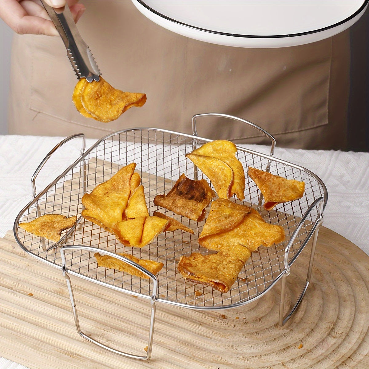 Barbekyu tokchasi, yog' to'kish tokchasi, gril to'ri pech tokchasi, yog' filtr tokchasi - Nikel 304 - Havo frityur aksessuarlari - Kvadrat dizayn - Vertikal saqlash