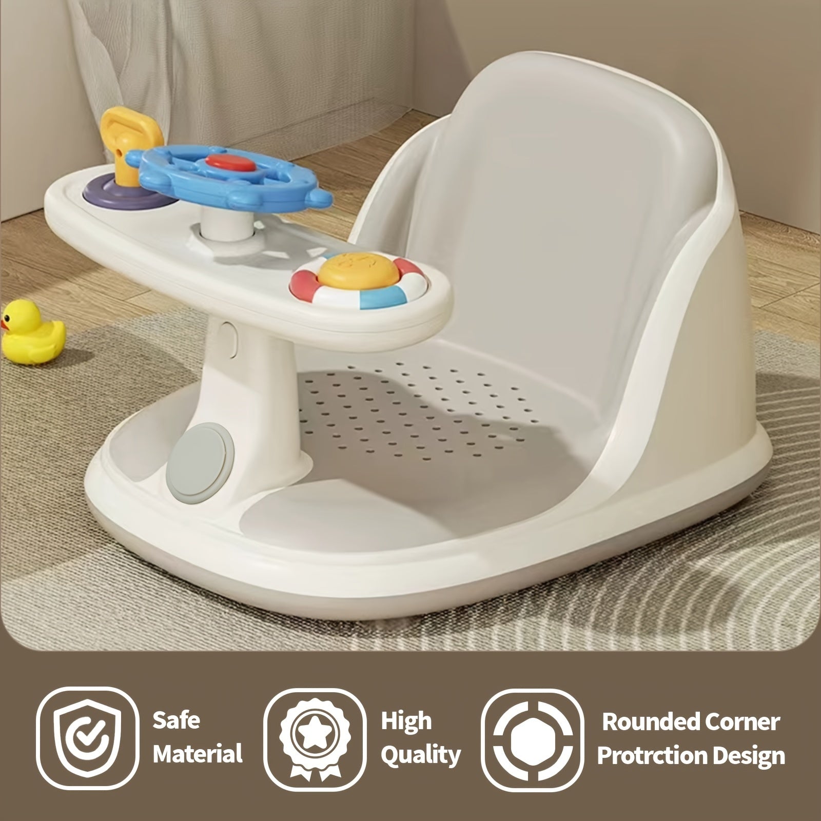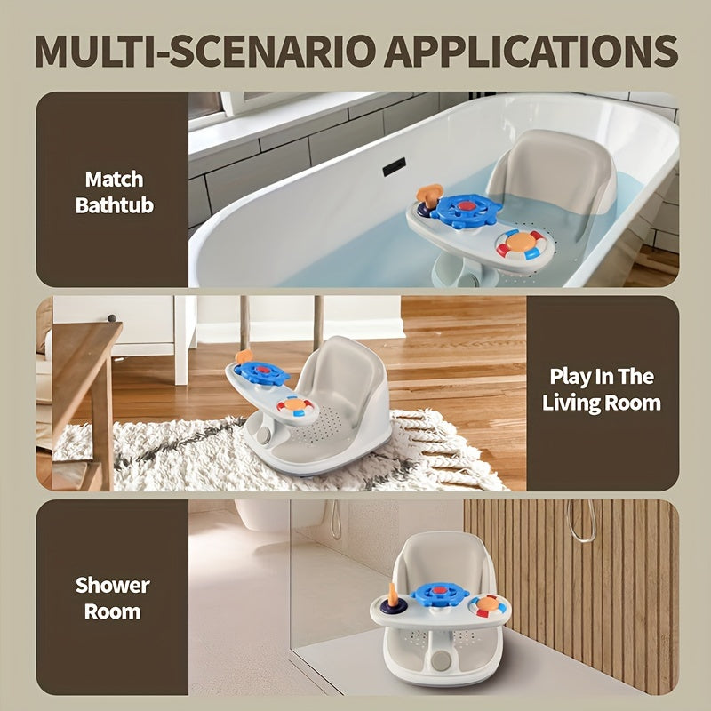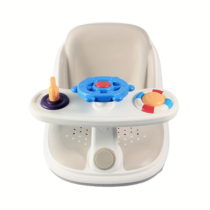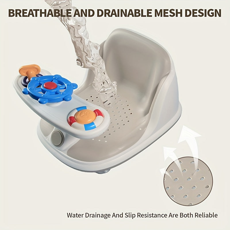 Yoshlar uchun kulrang hammom o'rindig'i, 3 ta qiziqarli o'yinchoq bilan - sirpanmaydigan, xavfsiz va o'yin vaqti uchun qulay