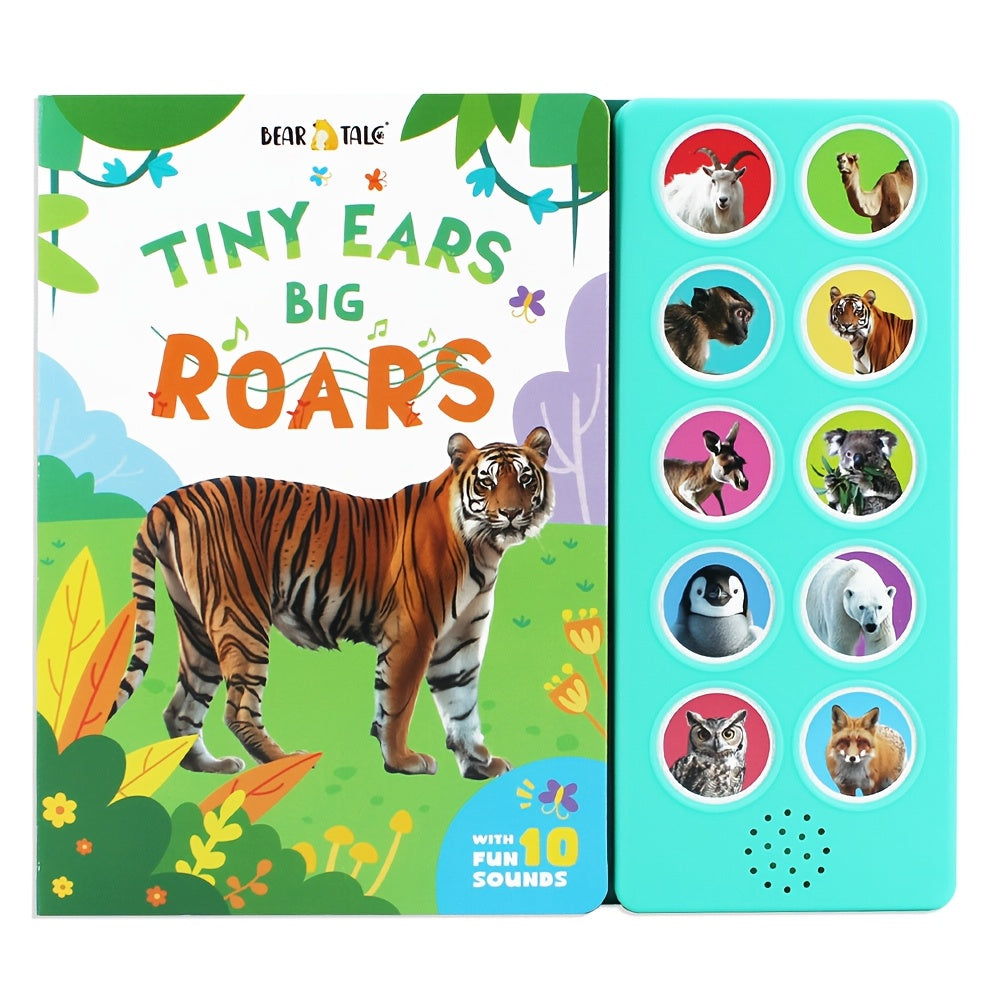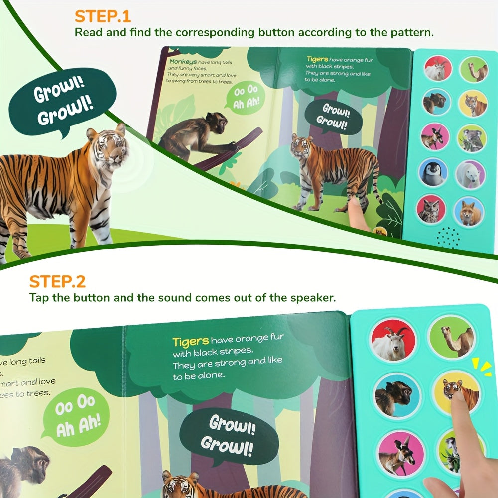 Bolalar uchun tovushli kitob, kichik yoshdagi bolalar uchun yovvoyi hayvonlar, 10 ta tugma bilan interaktiv qattiq muqova