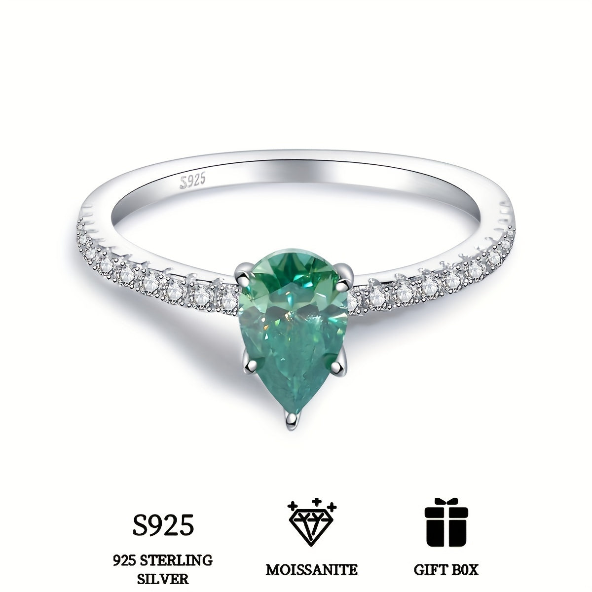 Chiroyli 925 Sterling Silver 1.5ct Dengiz Ko'k Suv Tomchisi Piyola Shaklidagi Moissanite Halqa - Gipoallergen To'y Qizil Halqa, Ayollar uchun Mukammal Qiz Do'stga Sovg'a. Moissanite Sertifikati va Nafis Sovg'a Qutisi bilan birga keladi.
