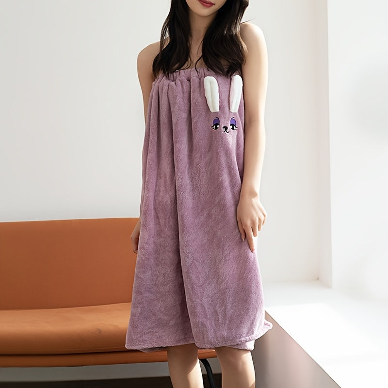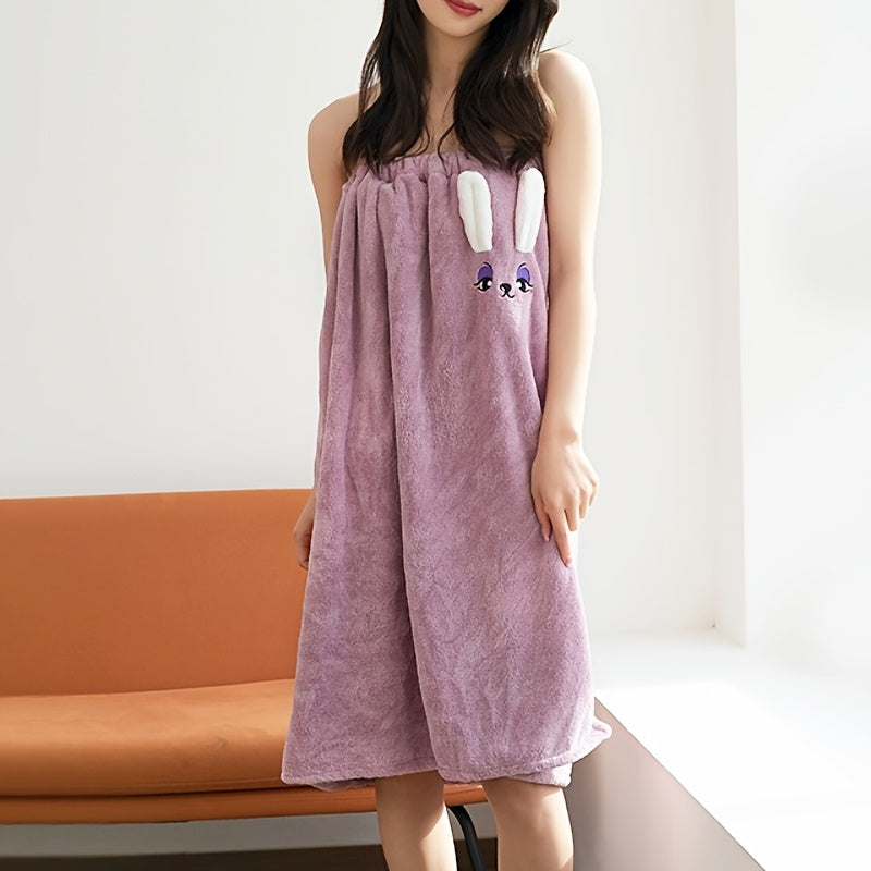Shirin ranglar bilan Bunny vanna kiyimlari, tiklangan polyester, tez quriydigan, namlikka chidamli sochiq va sharf