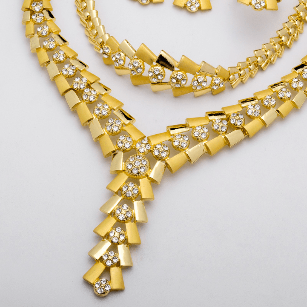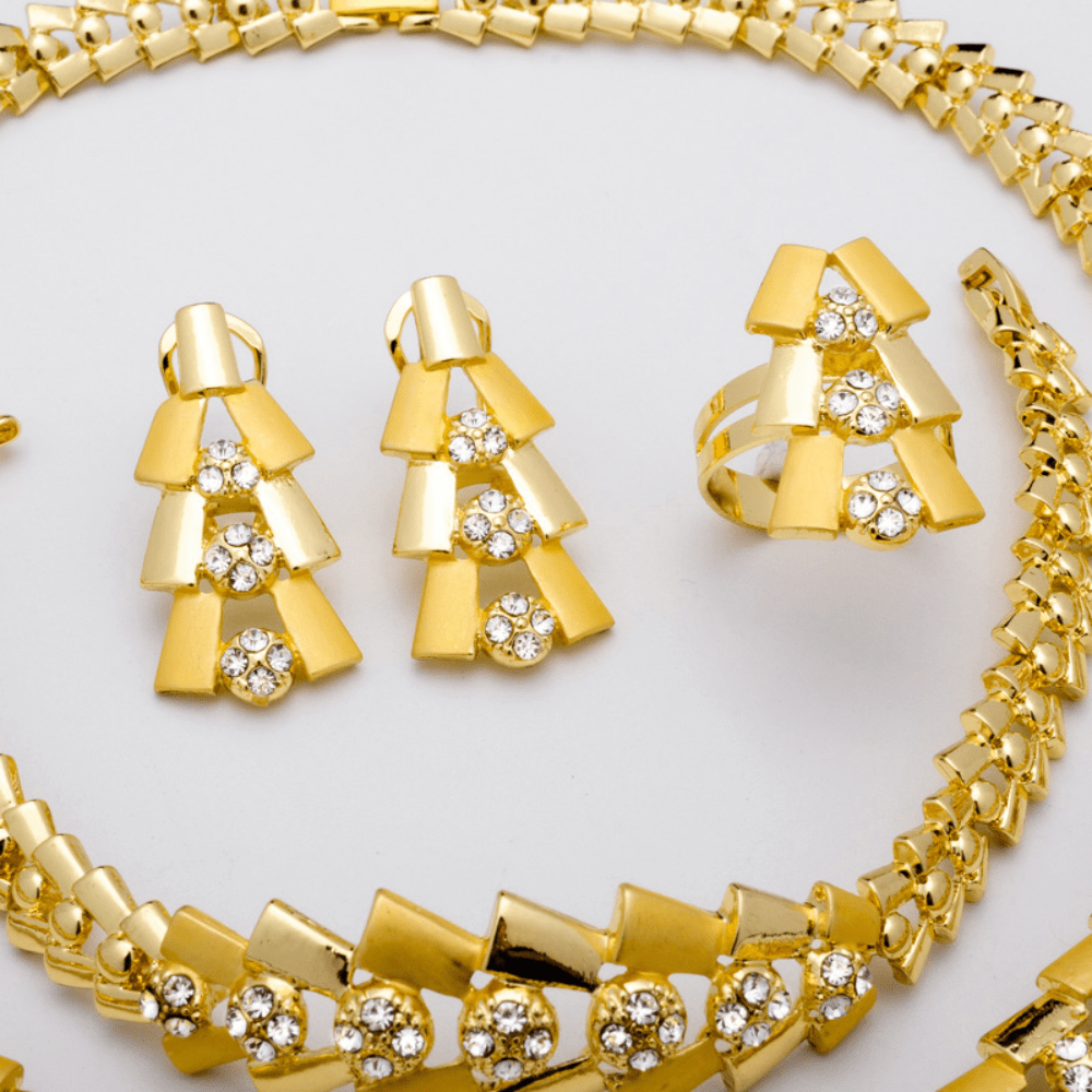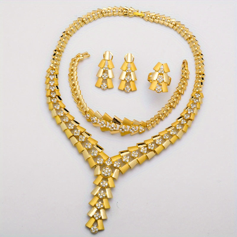 Ayollar uchun mis va zirkoniy to'plam, oltin tonidagi vintage geometrik dizayni bilan, partiyalar va to'ylar uchun
