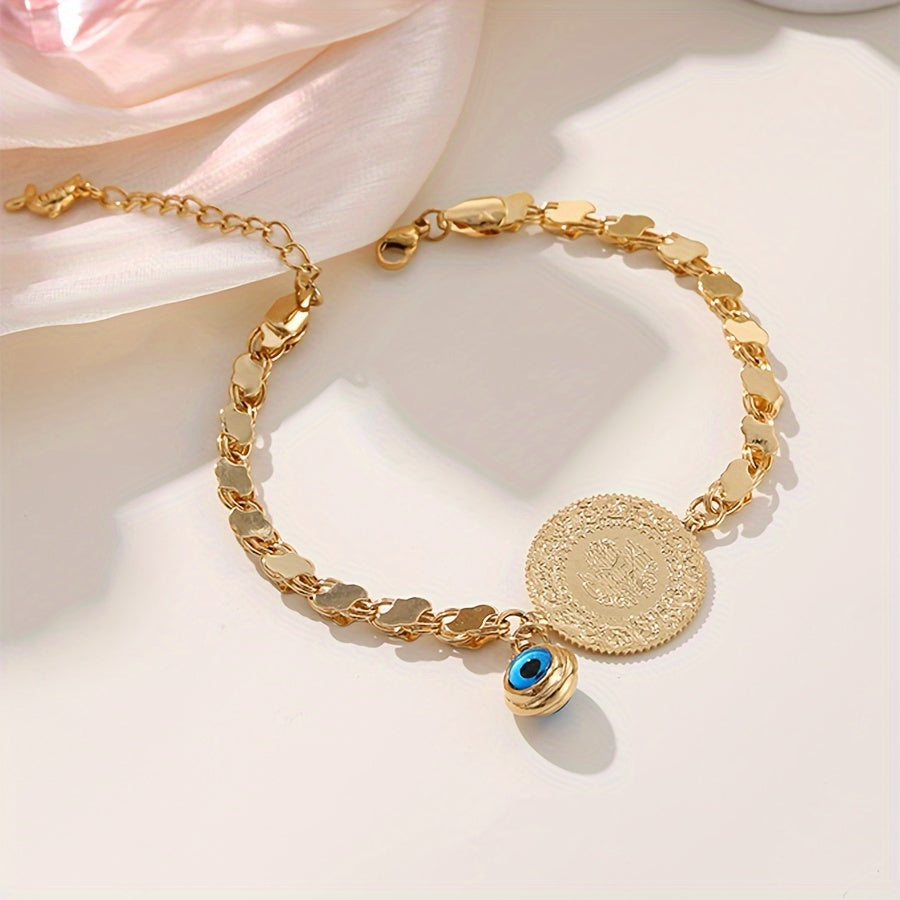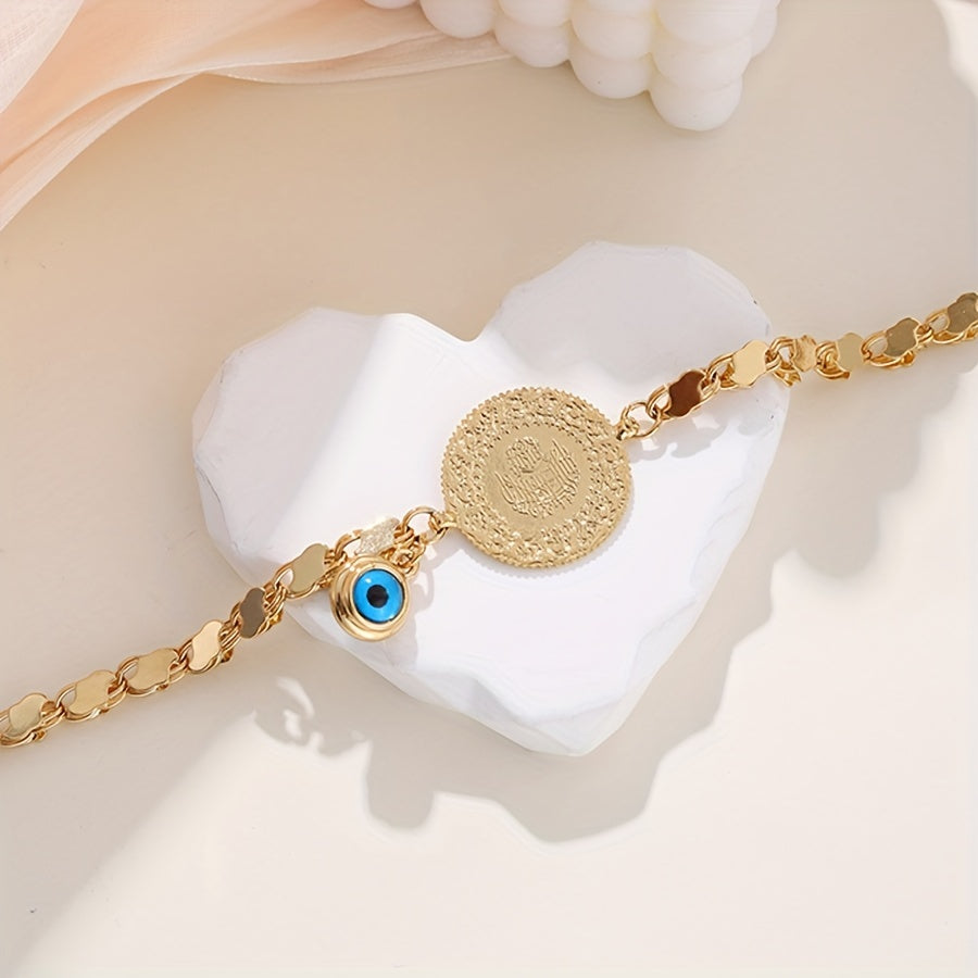 Chiroyli Qo'lda Yasalgan Yomon Ko'z Charm Bilaguzuk - Har Kun Ki Ki Wearing Uchun Ideal, Noyob Oltin Qoplangan Mis Tangalar Bilan