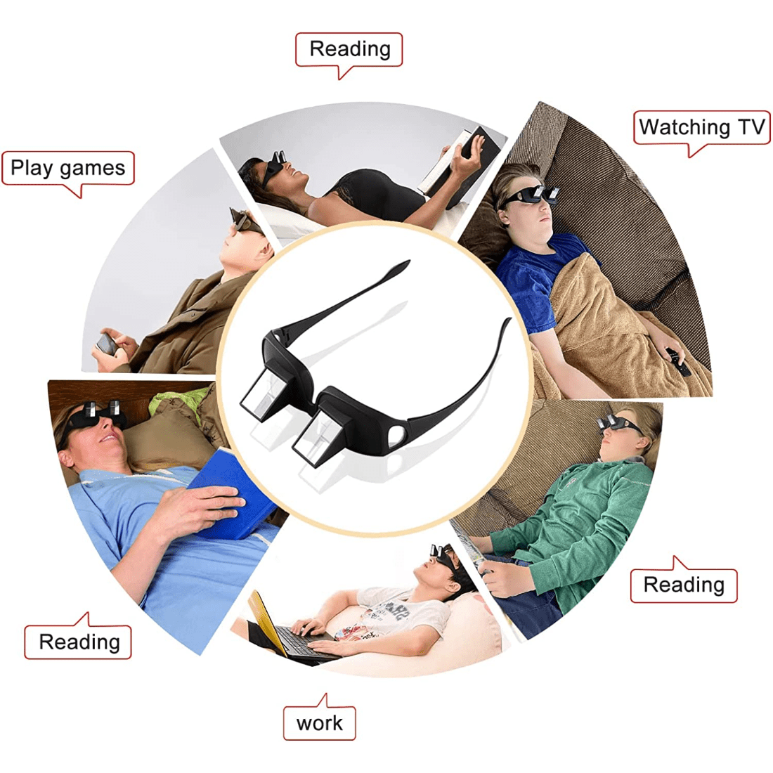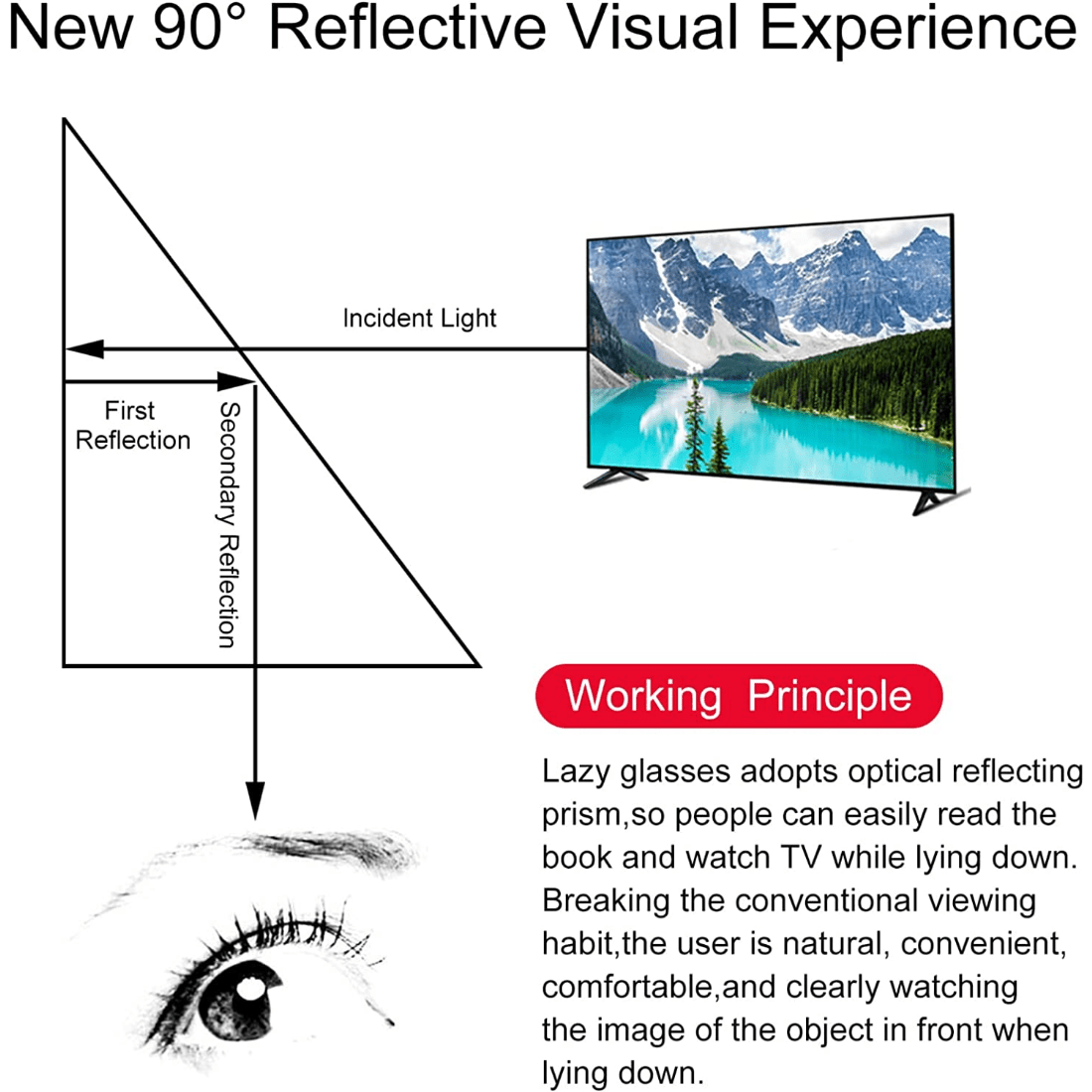 Gorizontal holatda o'qish va tomosha qilish uchun prism ko'zoynaklar, dam olish uchun o'qish yordamchisi