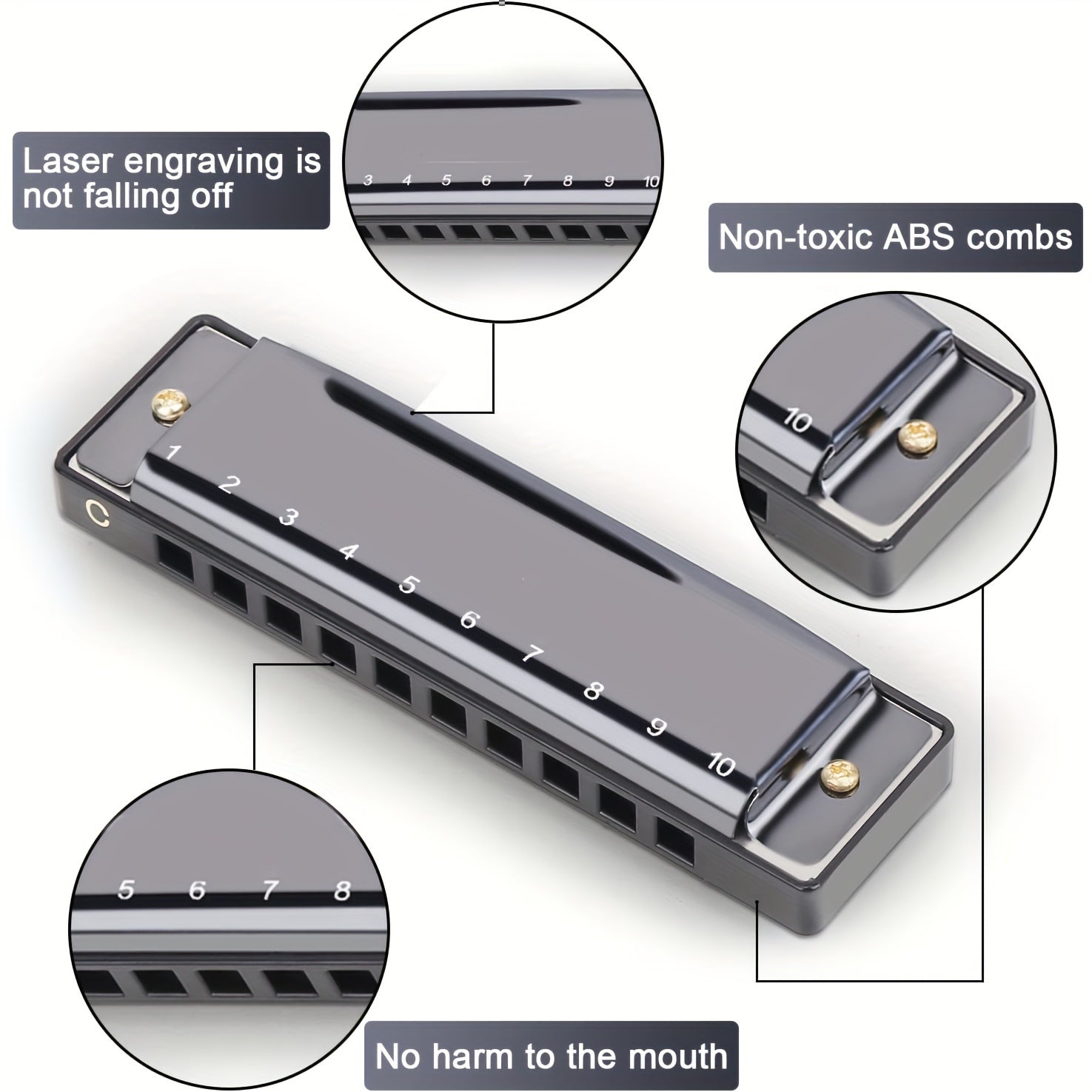 Boshlovchilar uchun 10 teshikli C kalitli blues harmonikasi metall qoplangan