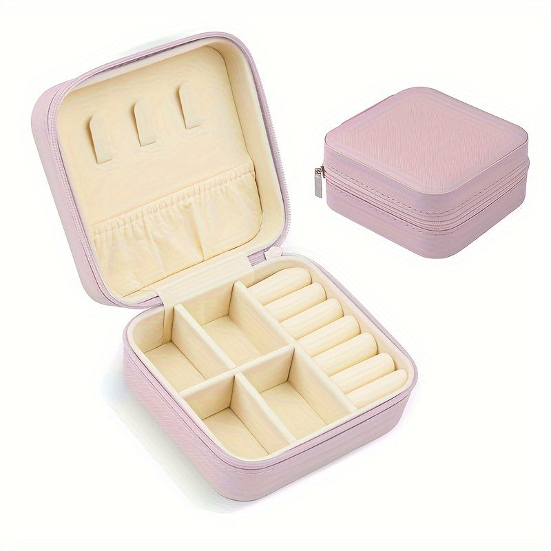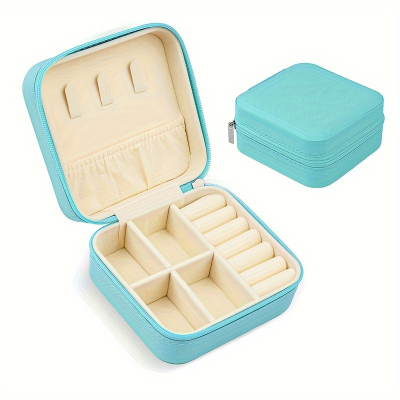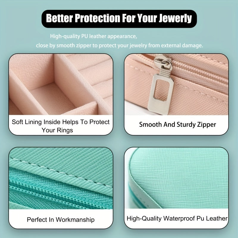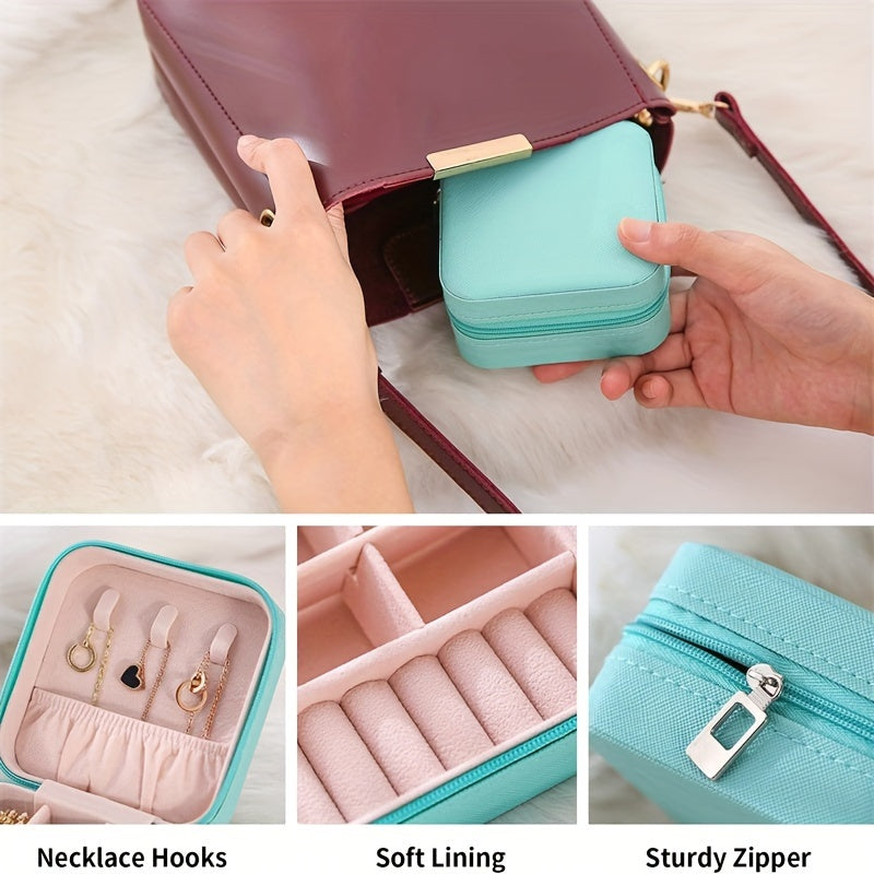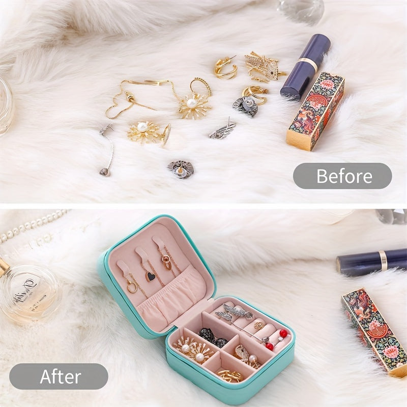 Kompakt sayohat uchun zargarlik qutisi, PU charm bilan tashkil etuvchi, uzuklar, sirg‘alar va taqinchoqlar uchun