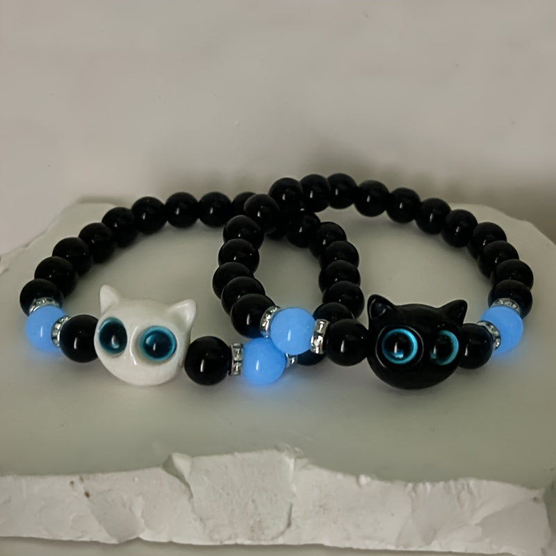 Yorug'likda porlaydigan mushuk zargarlik to'plami, bo'yinbog'lar va taqinchoq bilan juftlar va do'stlar uchun