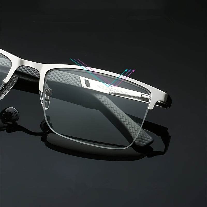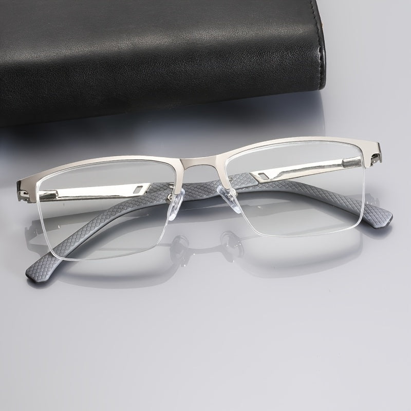 Erkaklar uchun yarim ramkali metall o'qish ko'zoynaklari, uzoq ko'rish uchun, charchoqga qarshi +1.0 dan +4.0 gacha