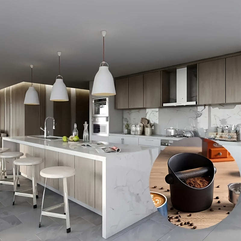 Qora ABS Coffee Knock Box, ajraladigan bolg'a bilan, sirpanmaydigan asos, Espresso maydalash uchun