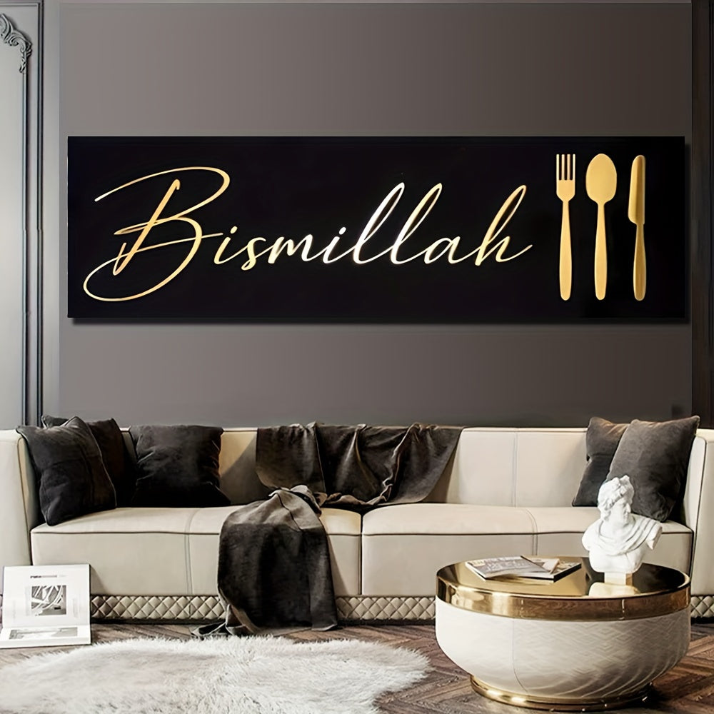 Qora va oltin rangli kanvas devor san'ati chop etish, oshxona, ovqatlanish va ofis uchun vintage harf mavzusi