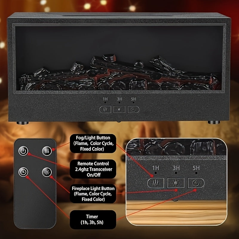 Oq va qora stol usti namlagich, olov rangidagi variantlar va aromaterapiya bilan