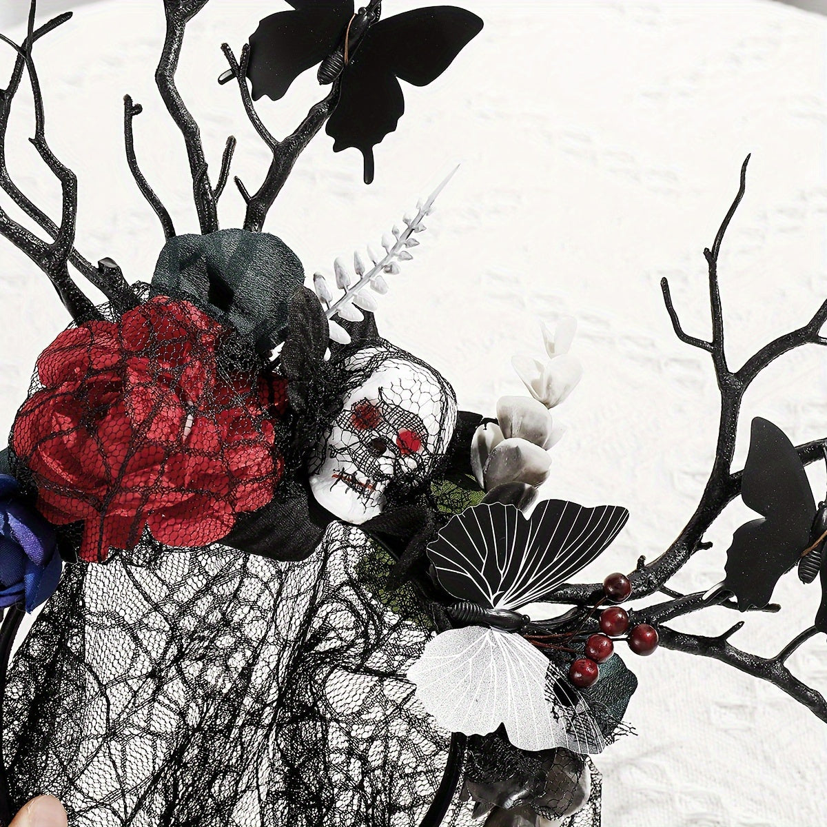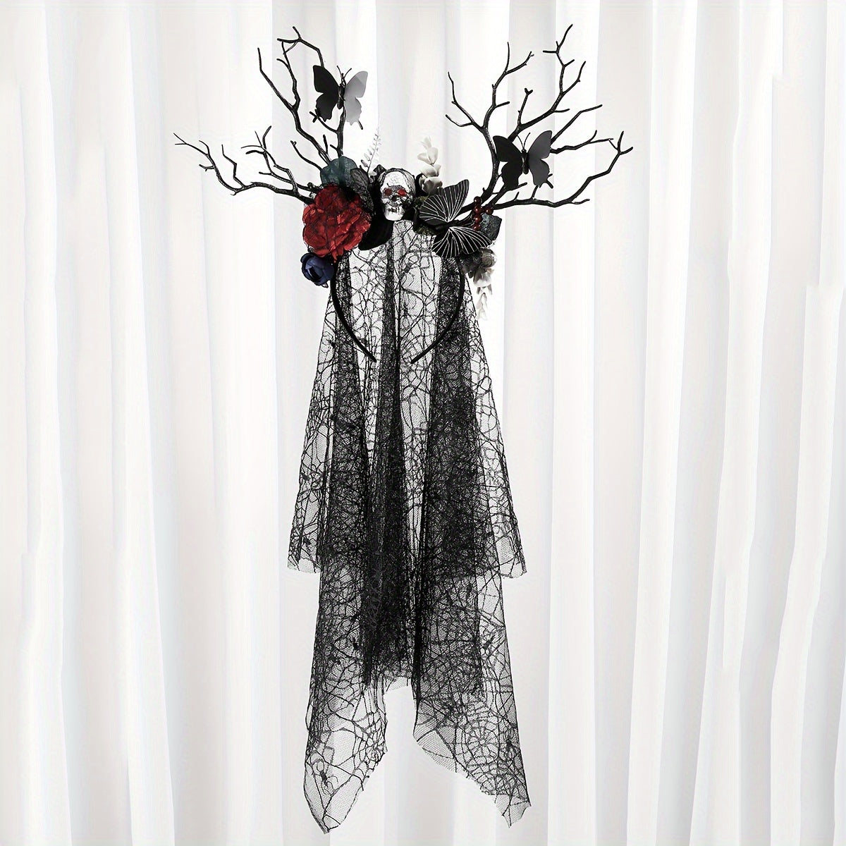 Qora farishta gul boshi bilan qargʻa tarmogʻi toʻqilgan qargʻa bosh kiyim Halloween kostyumlari uchun