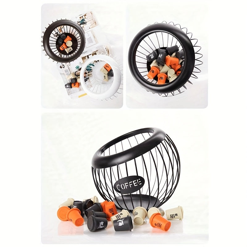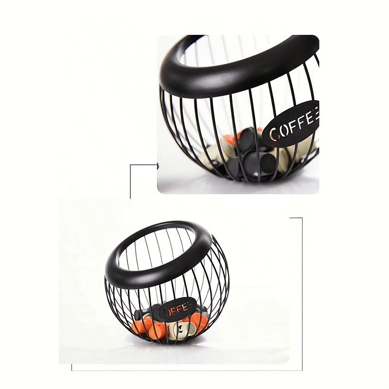 Qora Metall Qahva Kapsula Saqlash Savati Katta Hajm Qishloq Uslubi
