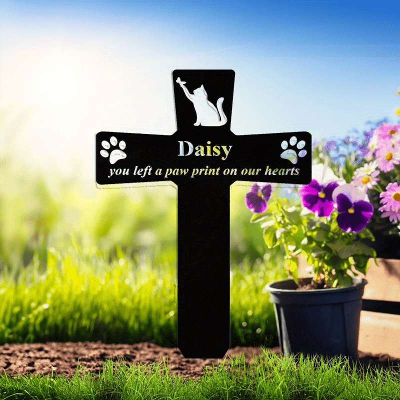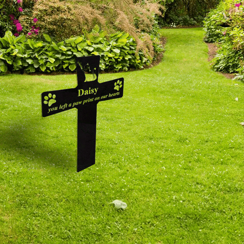 Qora metall hayvonlar uchun dafn qilish uchun belgi, ob-havo sharoitlariga chidamli, piyoda izlari bilan chiziqli rasm, mushuklar va itlar uchun
