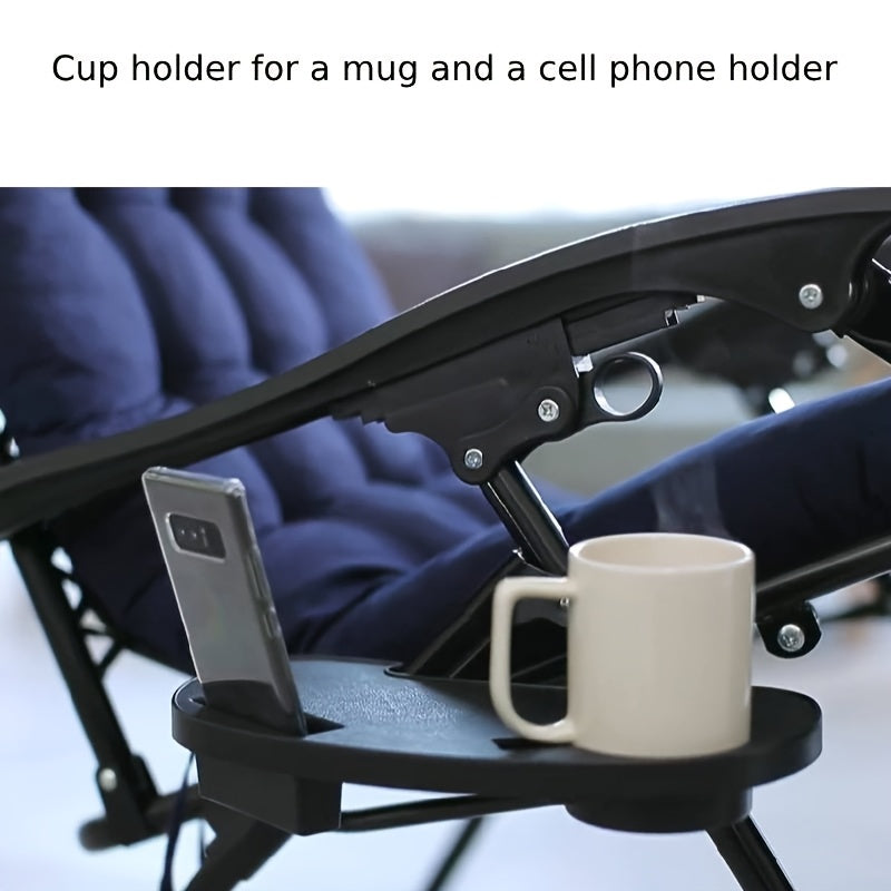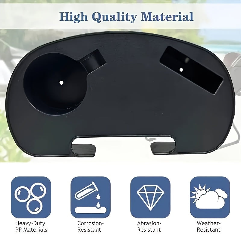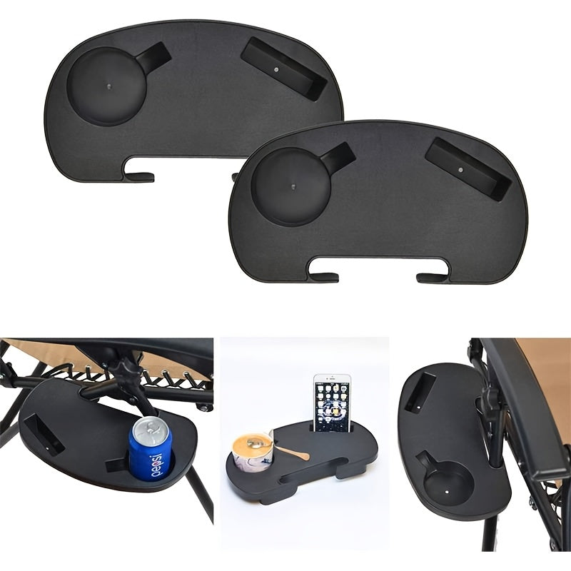Qora plastmassa stakan tutqichli plastinka, telefon uchun slot bilan, qayriladigan kreslolar va stullar uchun