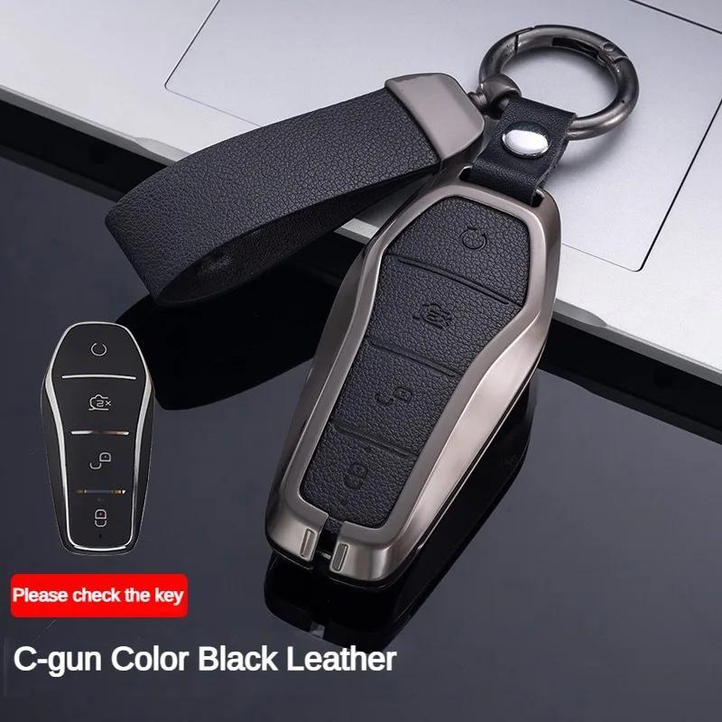 Qora PU charm bilan avtomobil kaliti qopqog'i, masofadan boshqarish va kalit bilan tutqich