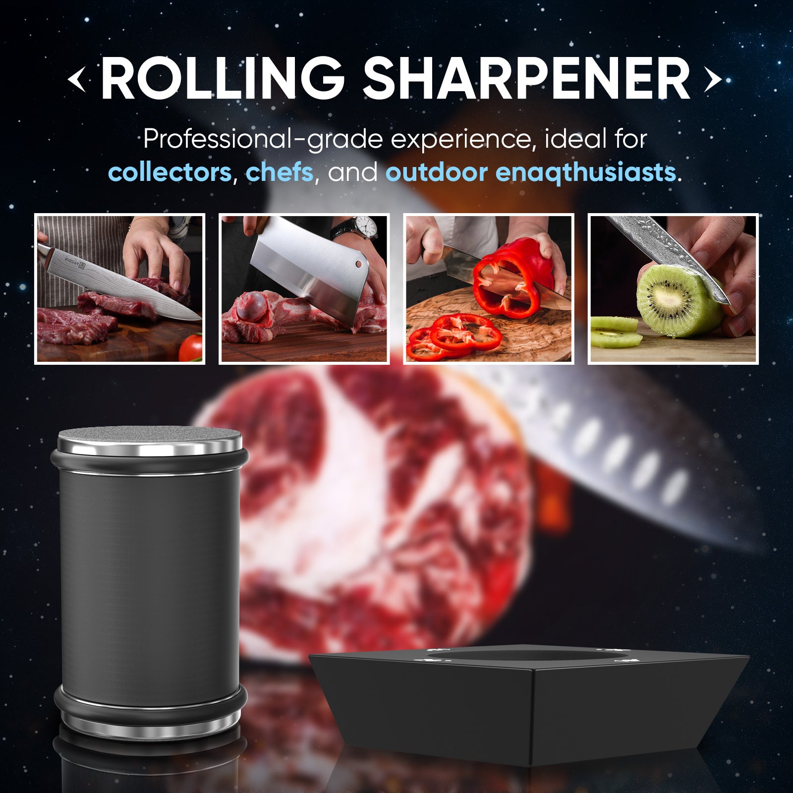 Qora pichoqni shimgich bilan 4 burchak qoʻllanma bilan oshxona pichoqlari uchun qoʻlda tizim bardoshli