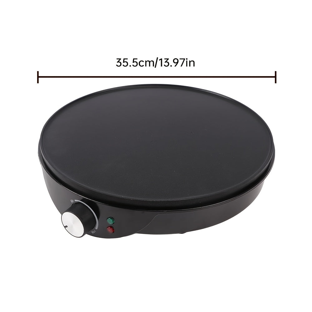 Yashil dumaloq burrito va crepe tayyorlash panasi, yog'och scraper bilan - 1000-1200W, ortiqcha issiqlikdan himoya qilish, knopka boshqaruvi, tortillalar, vafli va uyda tayyorlangan creplar uchun ideal.