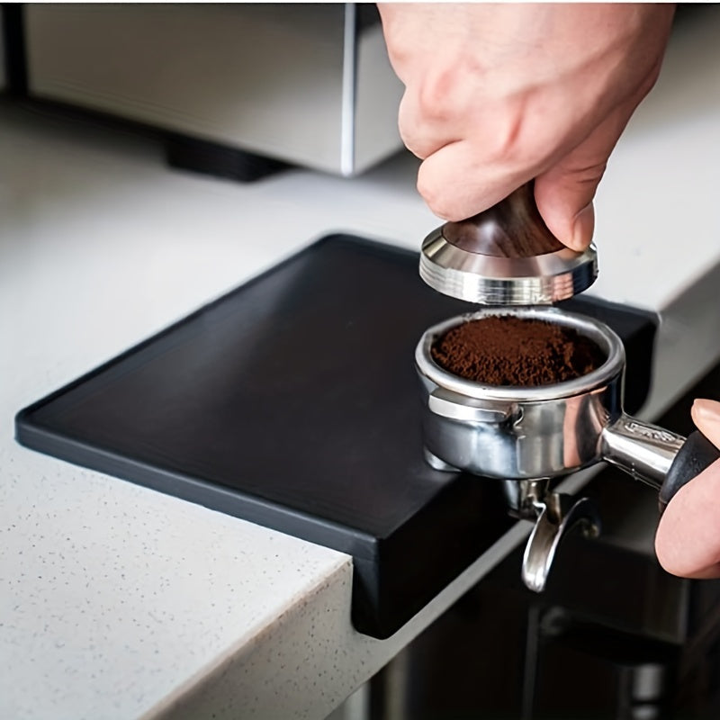 Qora silikondan tayyorlangan espresso tamping stantsiyasi barista aksessuarlari, qahva tampiri matasi 5.9x7.9 dyuym