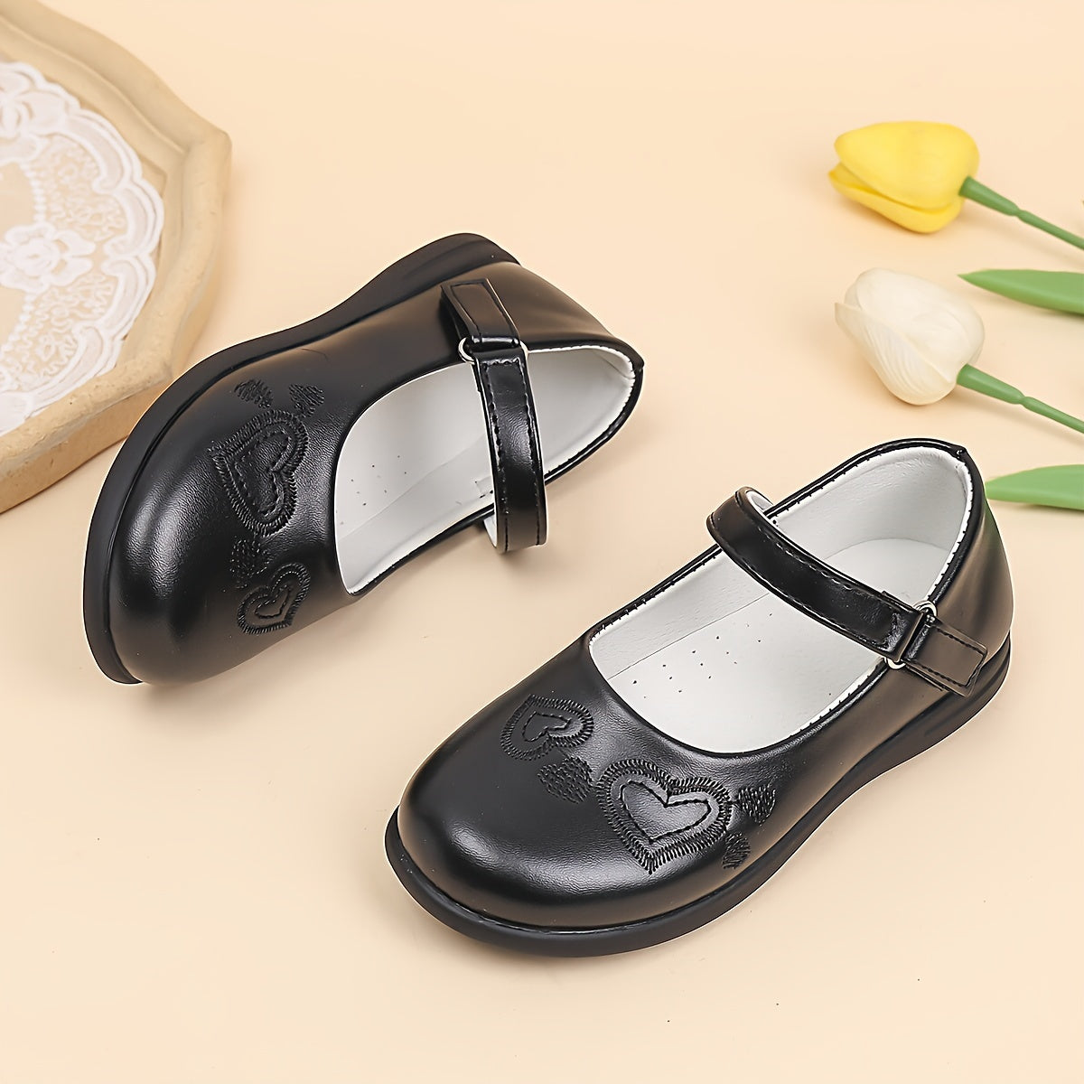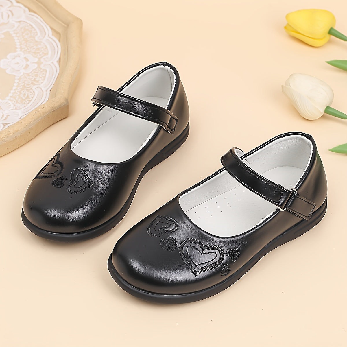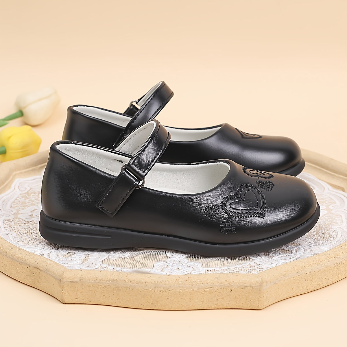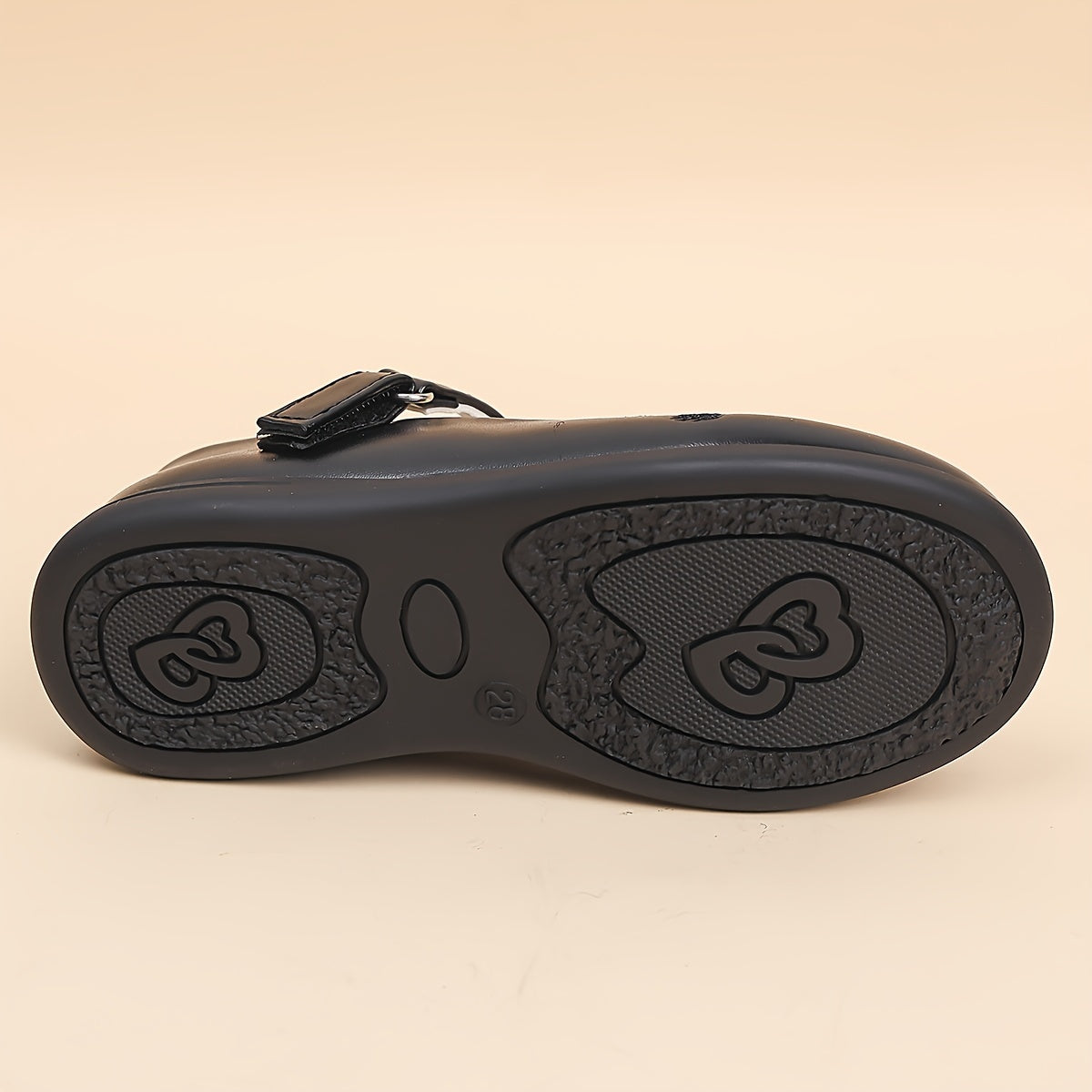 Qizlar uchun qora o'quvchi poyabzallari, maktab chiqishlari uchun yoqimli malika poyabzallari.