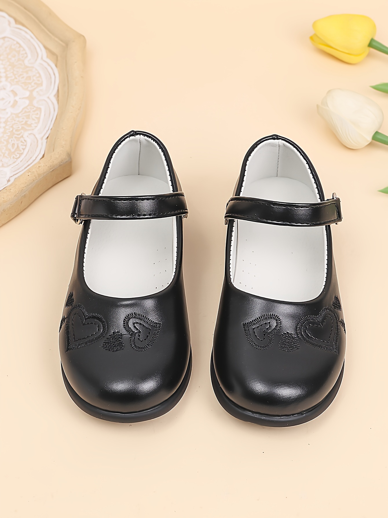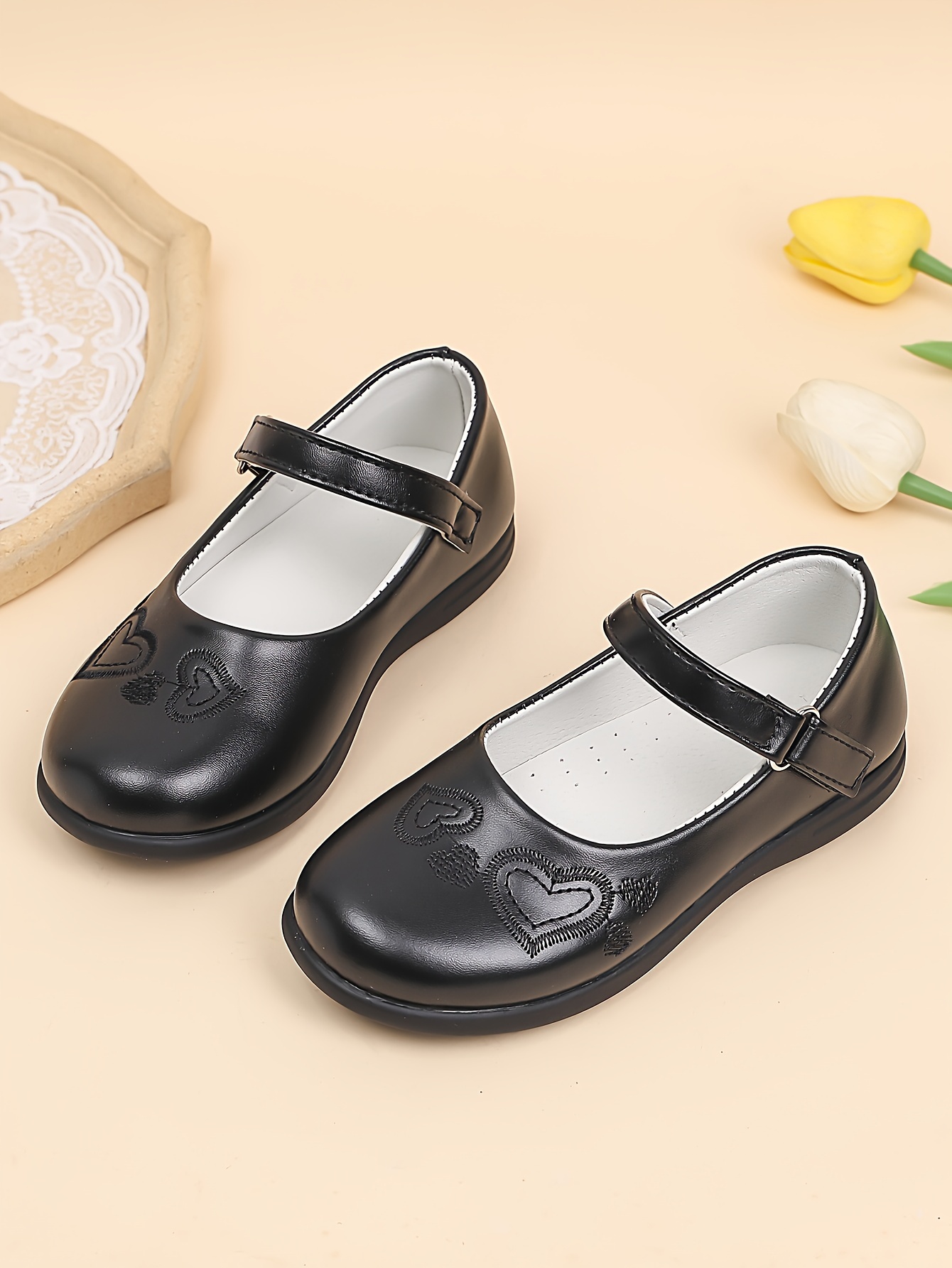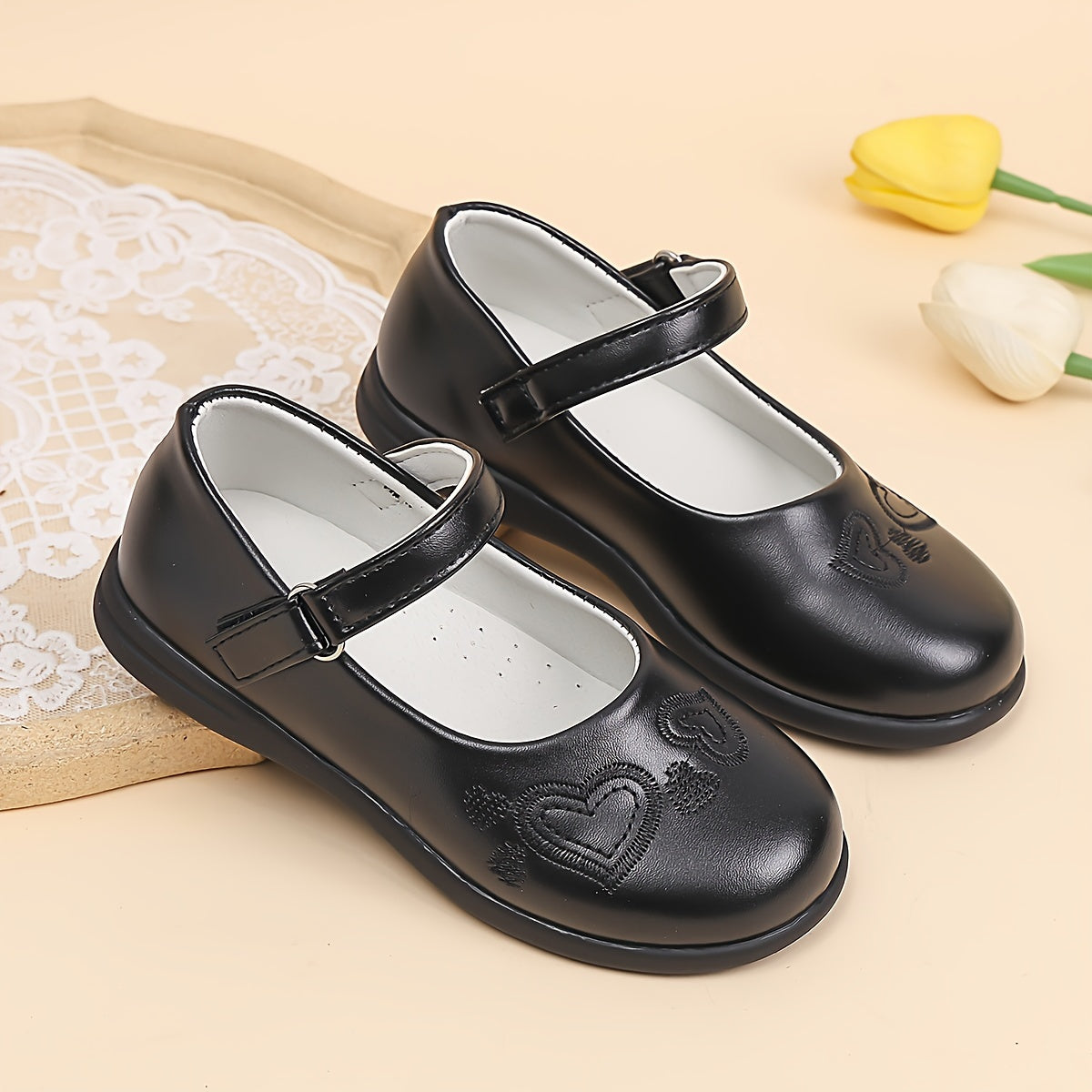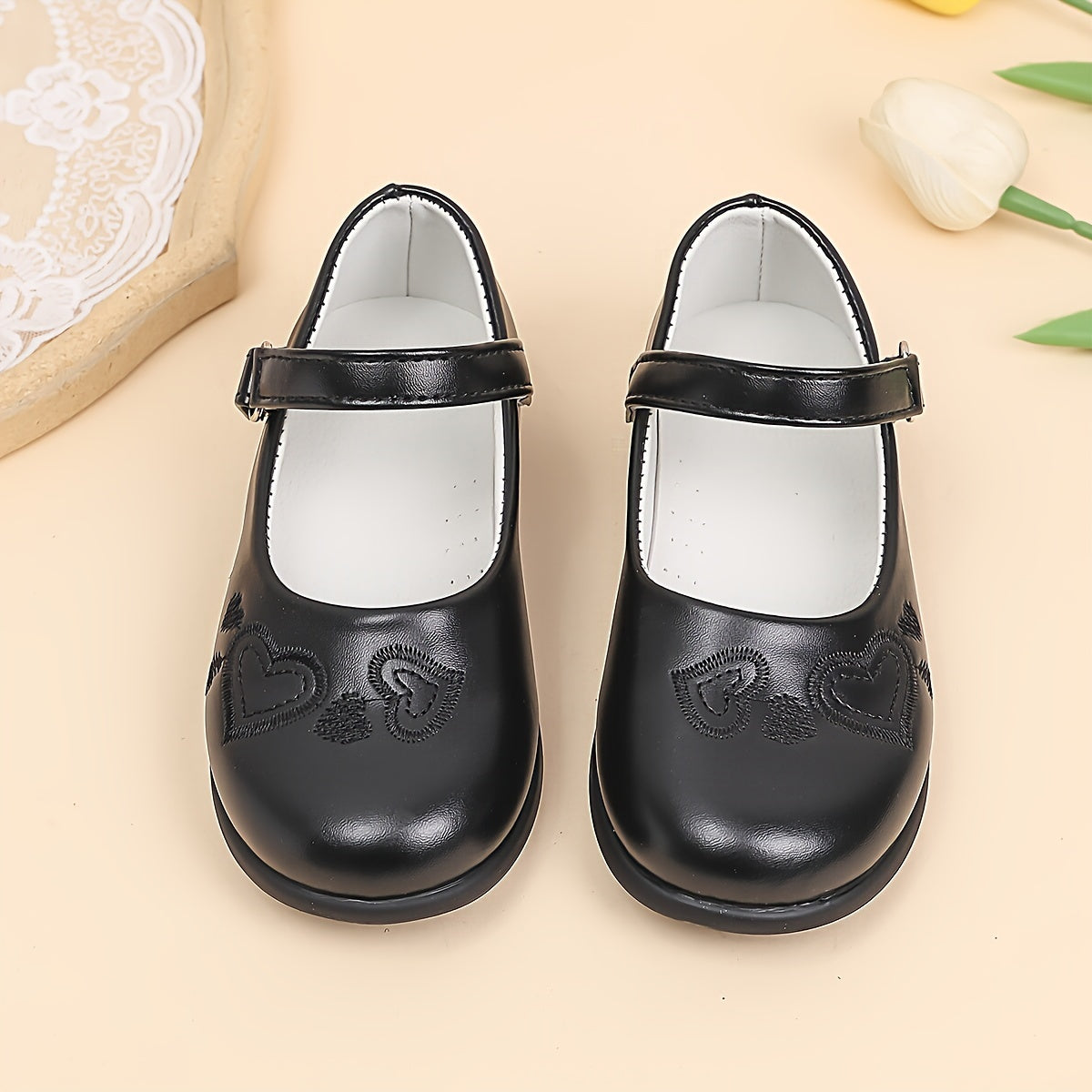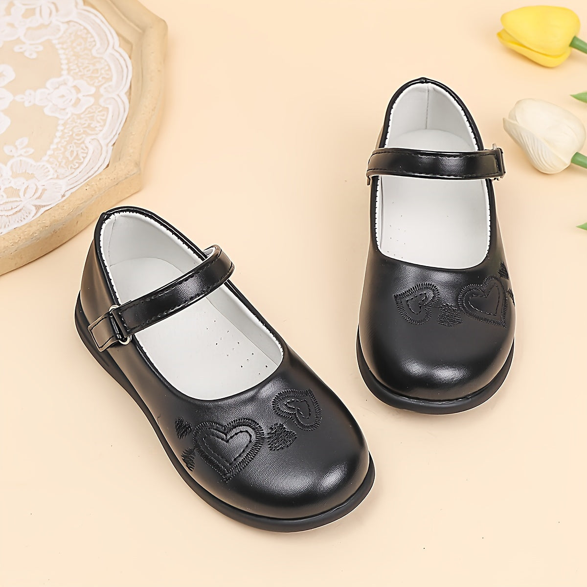Qizlar uchun qora o'quvchi poyabzallari, maktab chiqishlari uchun yoqimli malika poyabzallari.