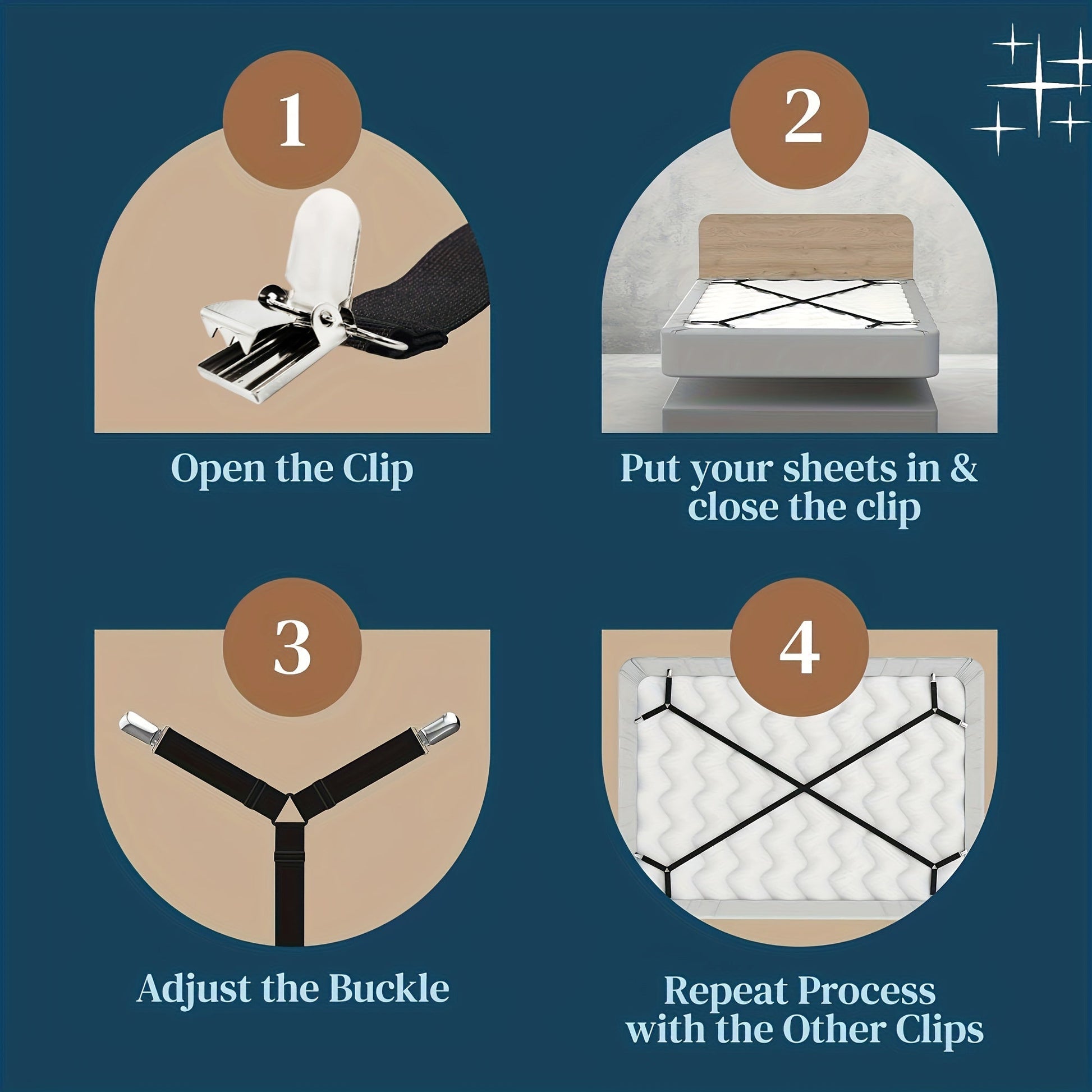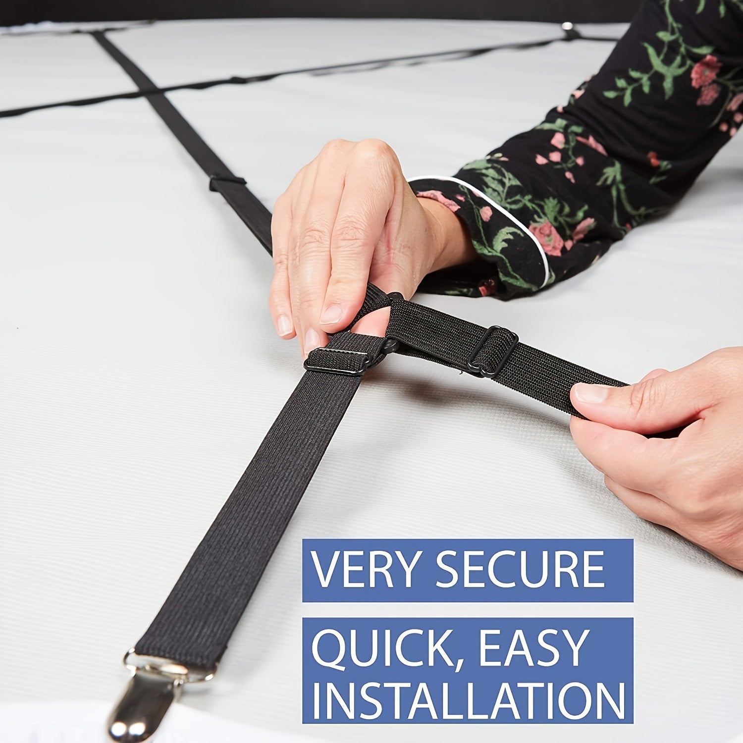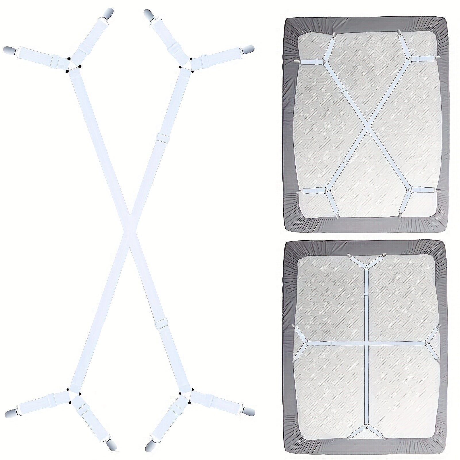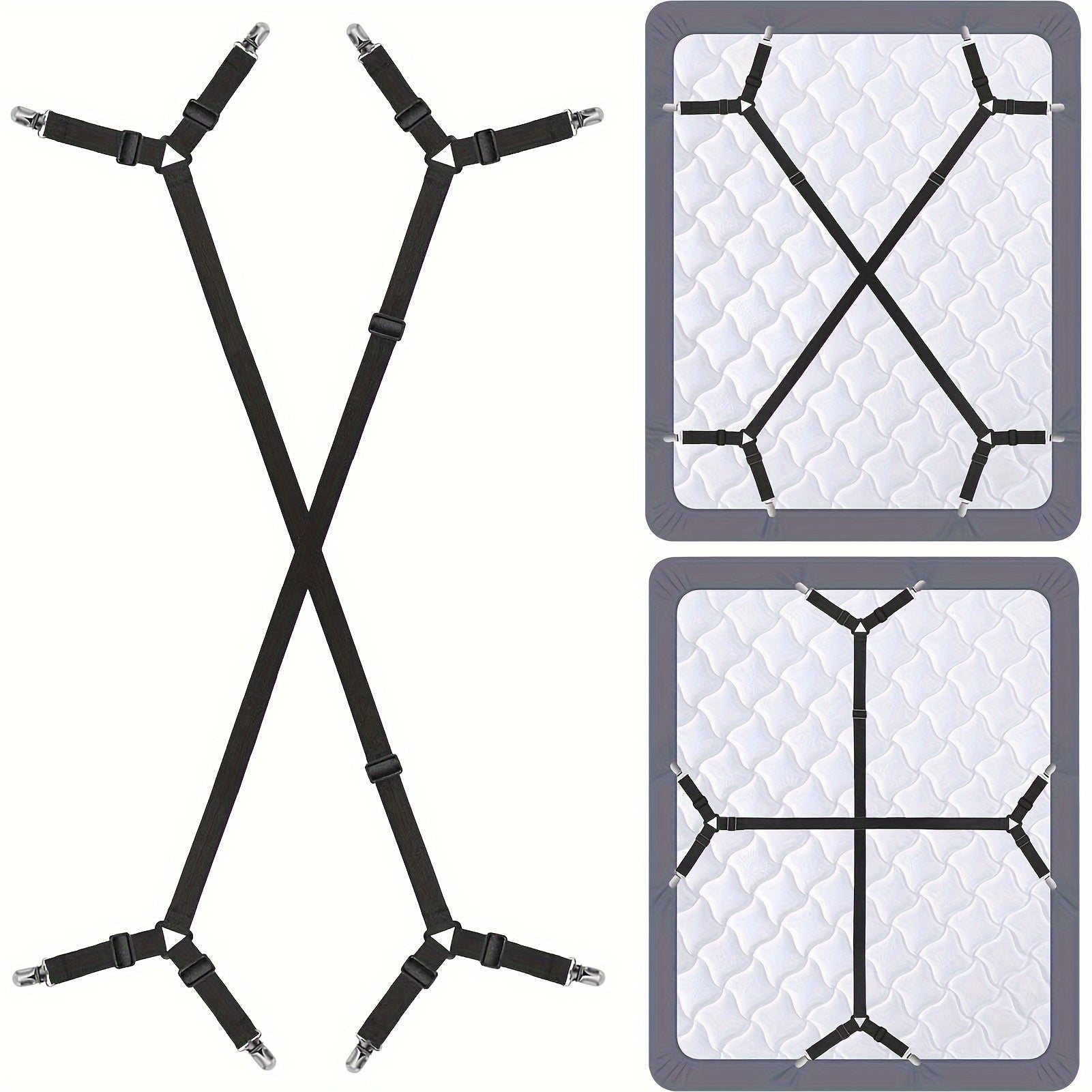 Qora oq sozlanadigan yotoq qoplami uchun elastik kliplar va straplar, mos keladigan tekis yostiq qoplami uchun