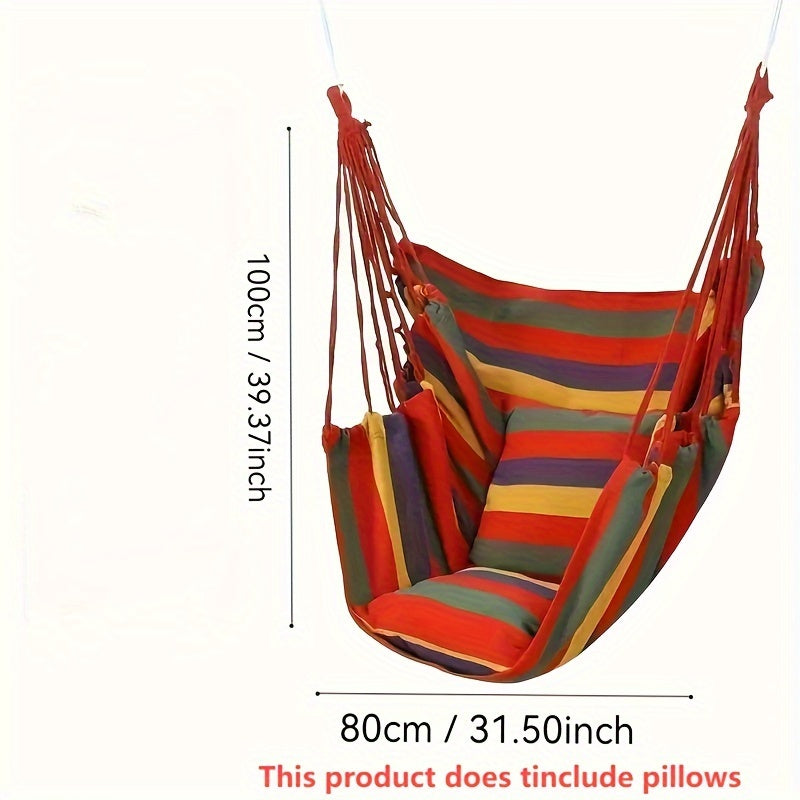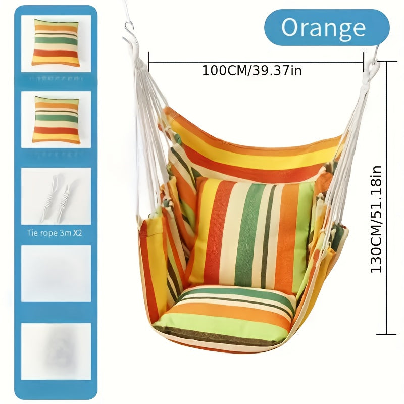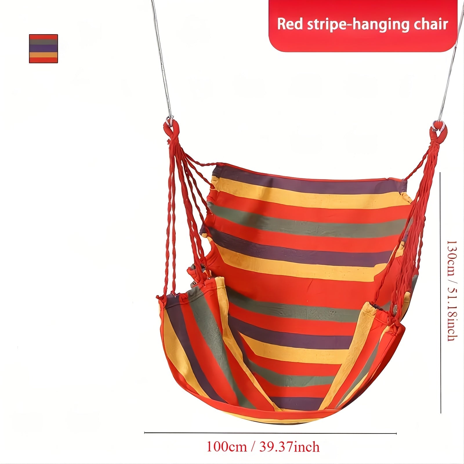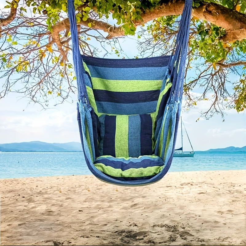 Ichki va tashqi dam olish uchun yog'och tayoq bilan ko'k va yashil chiziqli hamak kresloki