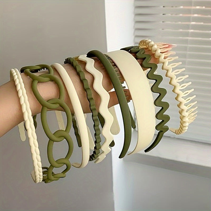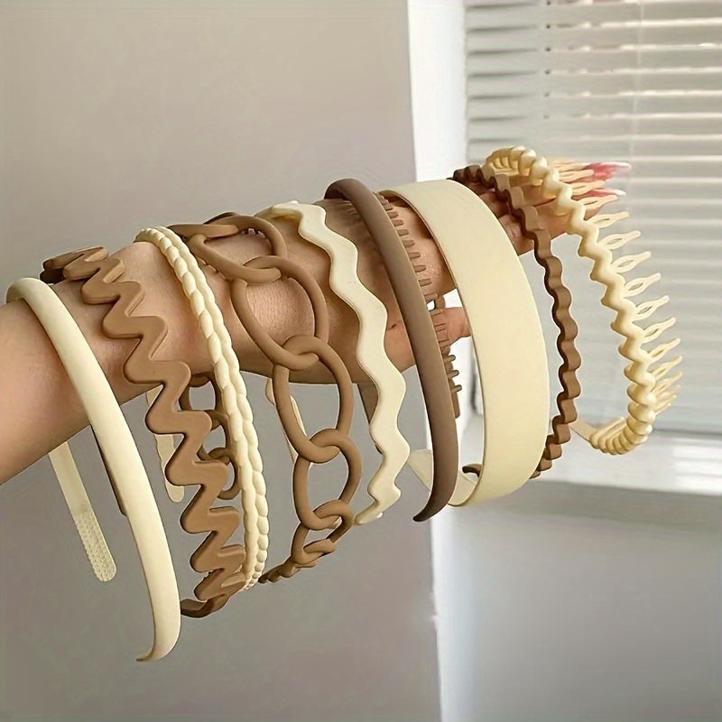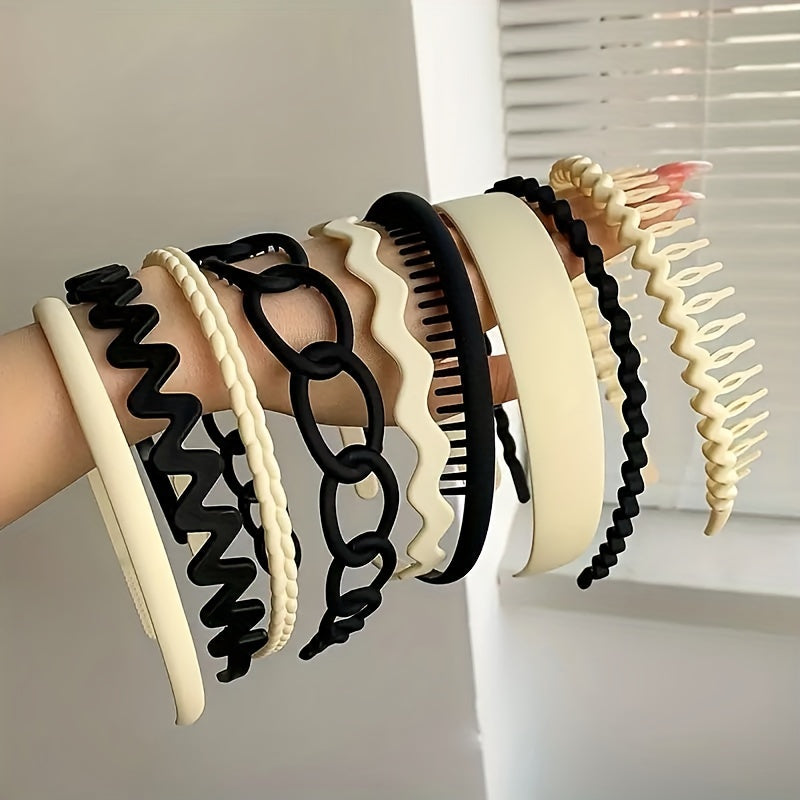 Ayollar uchun 9 ta bohemiya punk uslubidagi tishli soch bantlari, sirpanmaydigan, bir rangli soch aksessuarlari to'plami