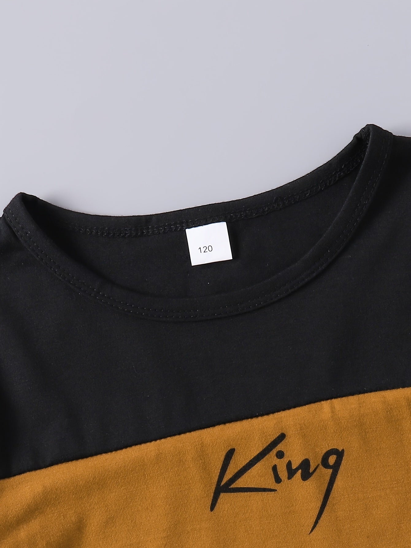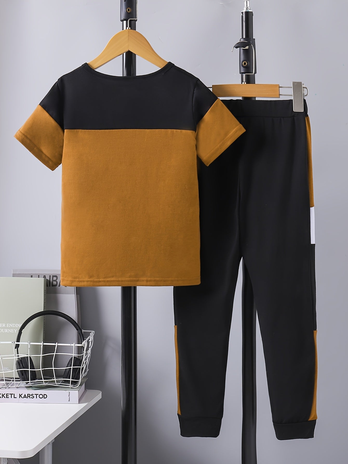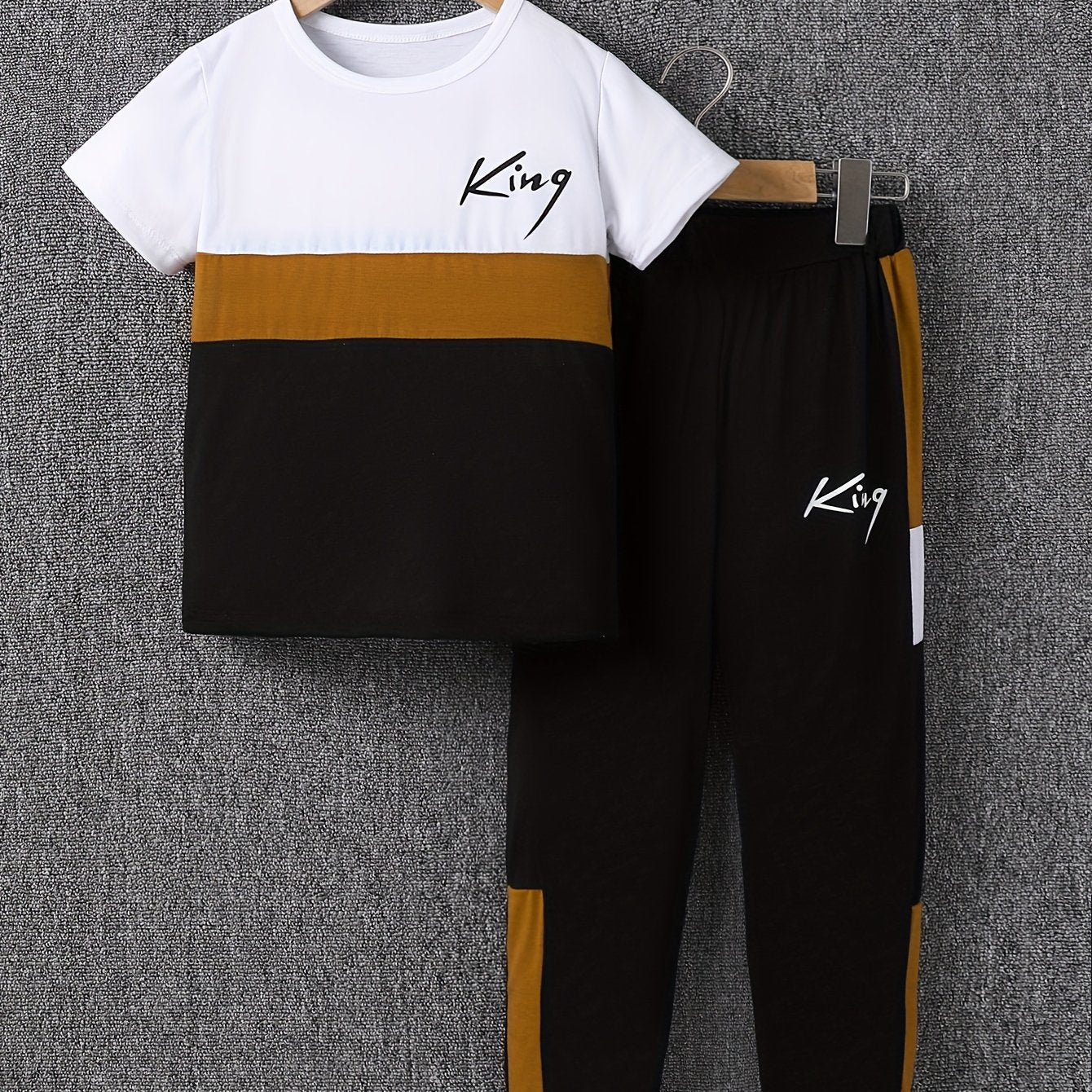 Yigitlar uchun yozgi kundalik ko'rsatilgan to'plam, rang blokli T-shirt va jogger shimlar bilan, 12 o'lcham