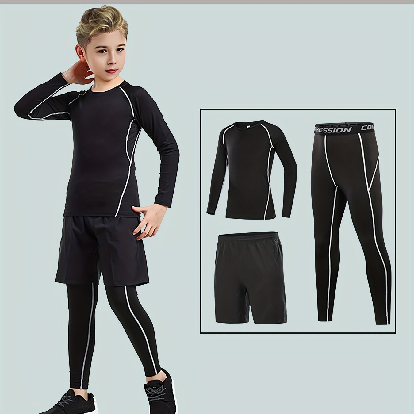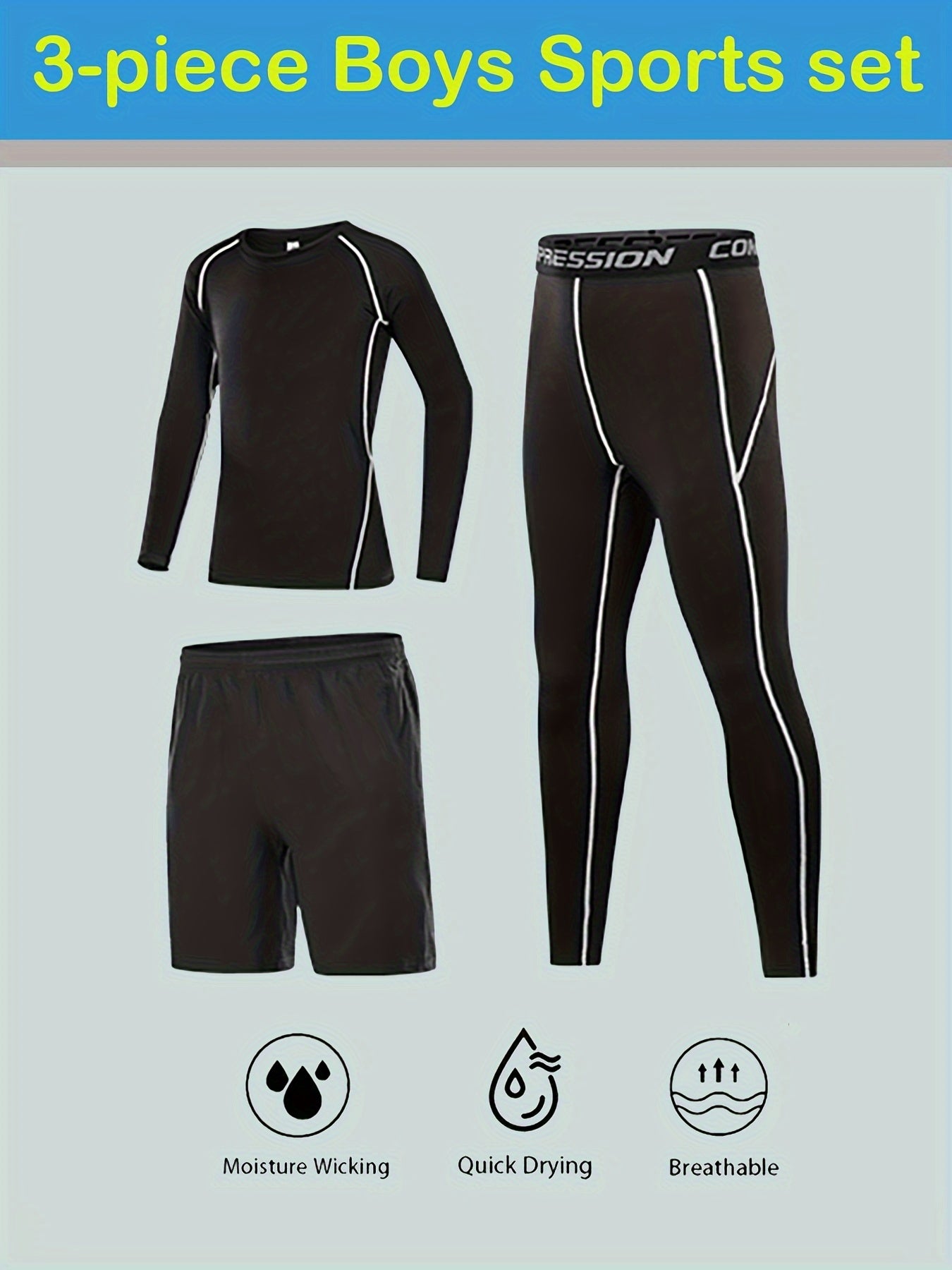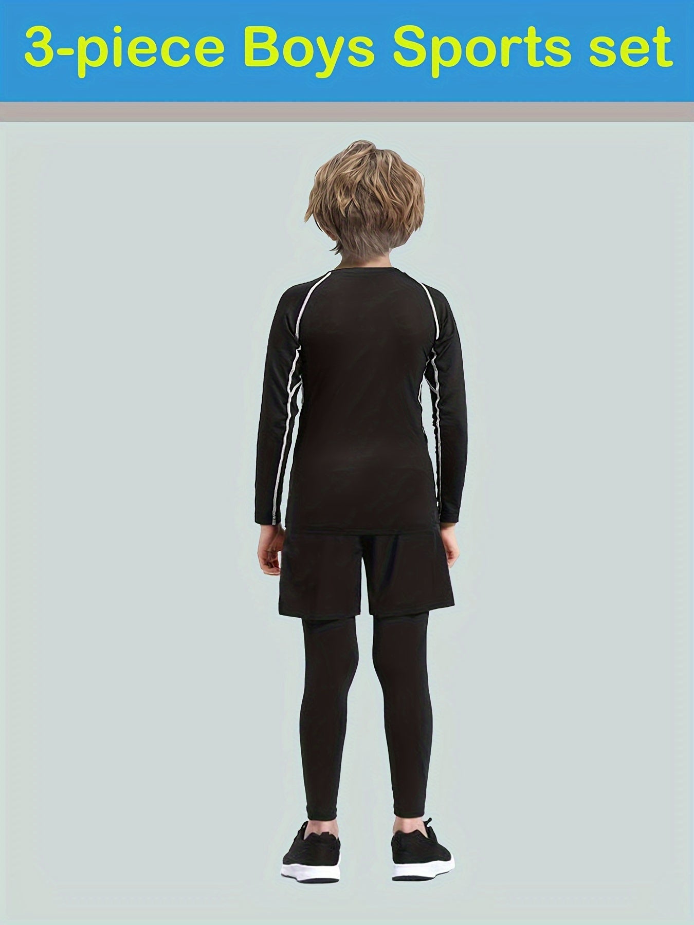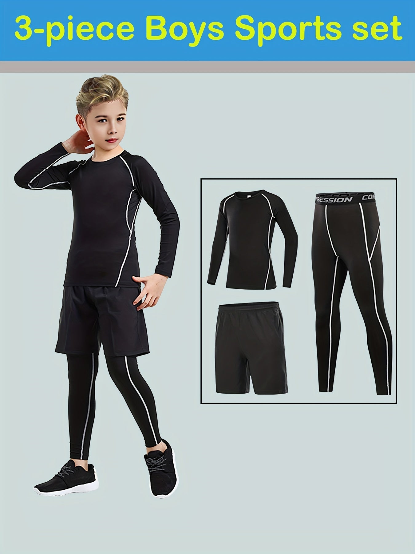 Yigitlar uchun sport kiyimlari to'plami, 3 ta qism, yuqori qism, legginslar va shortlar bilan bolalar uchun