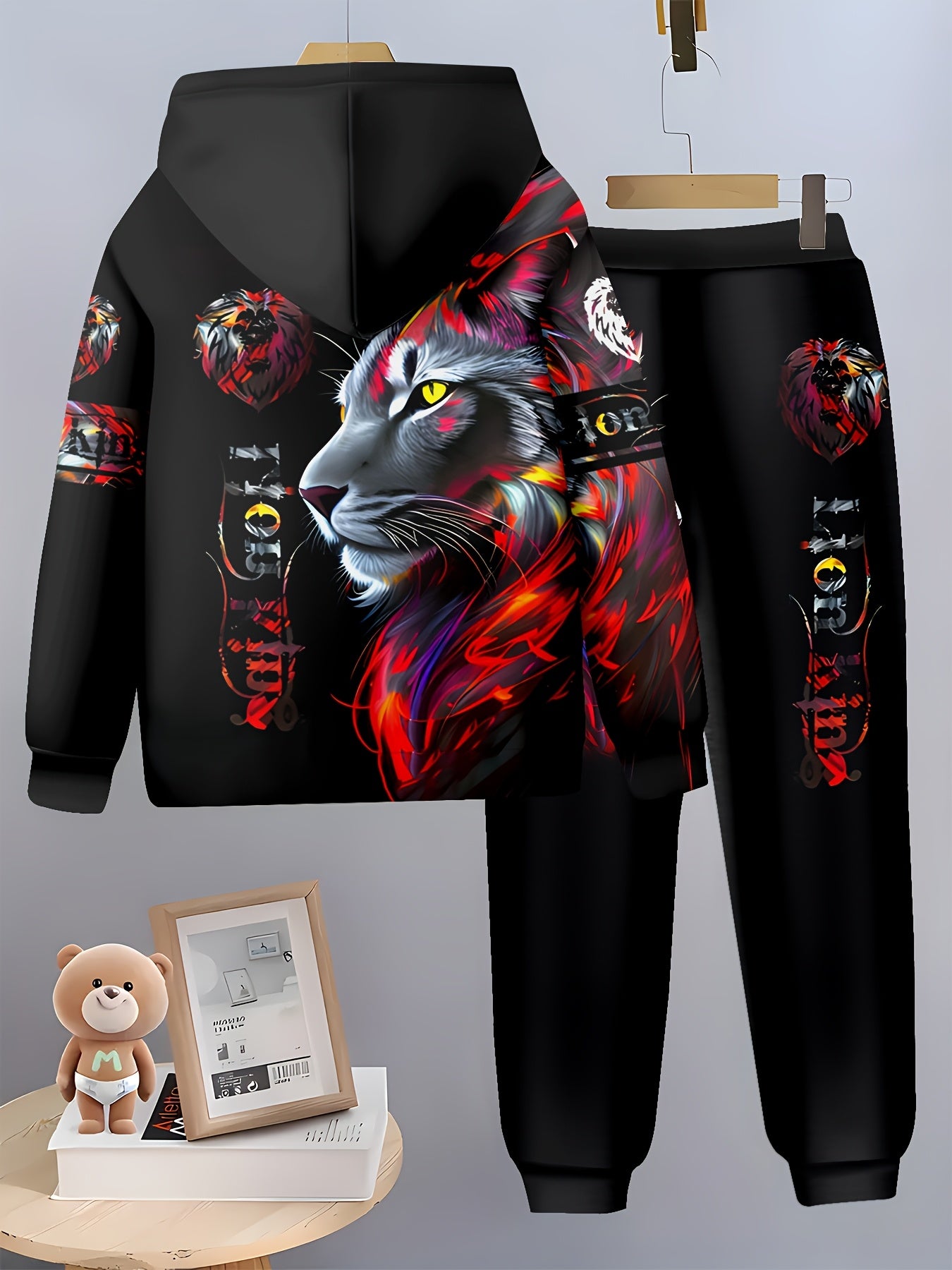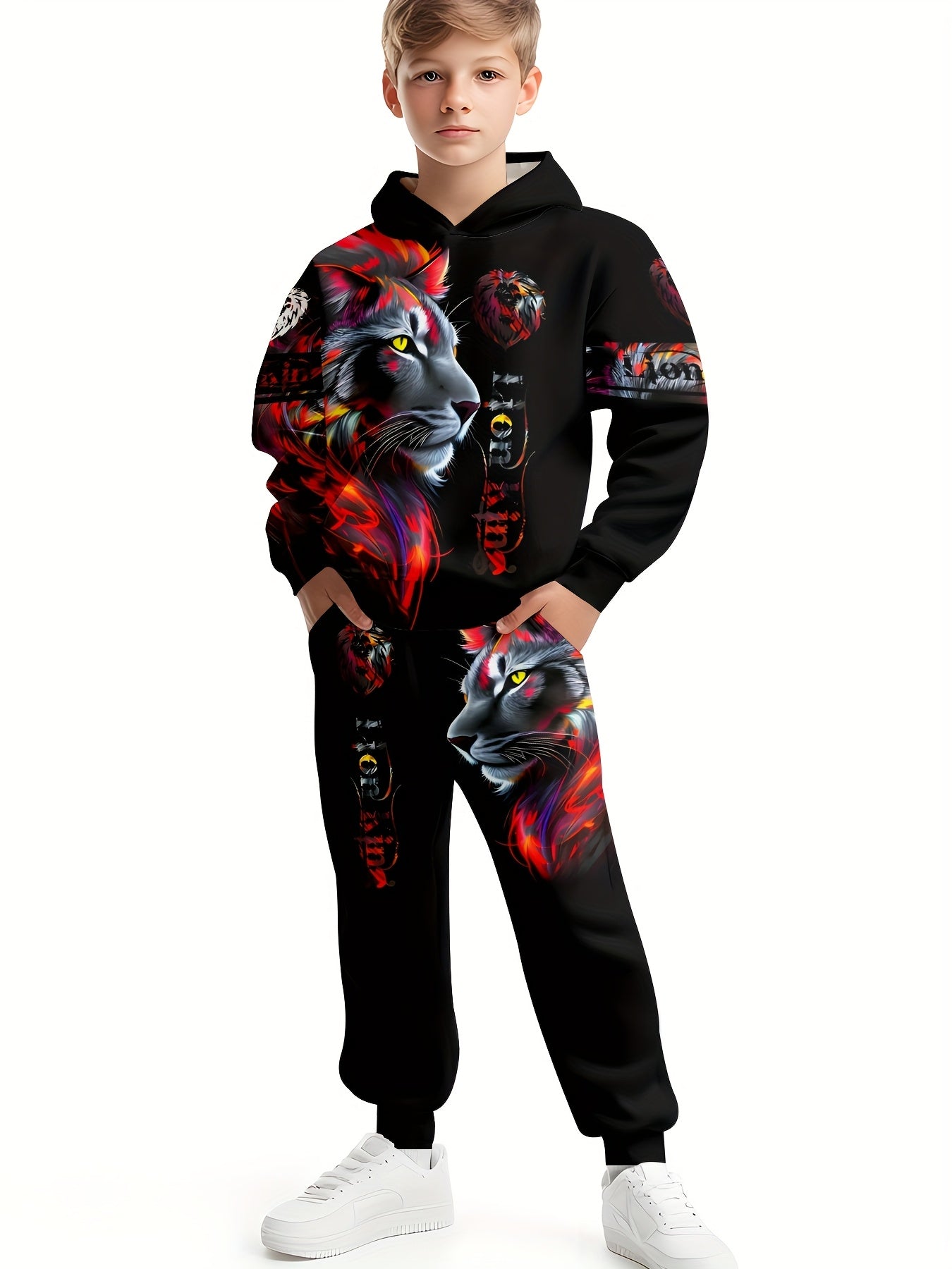 Yigitlar uchun 3D bosma kundalik sport kiyimlari to'plami, polyester to'qilgan kapushonli, oddiy fit, bahor va kuz uchun ochiq havoda