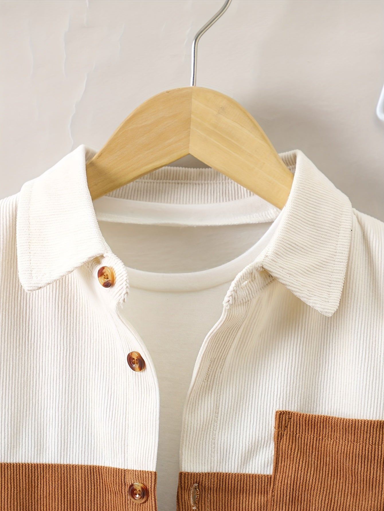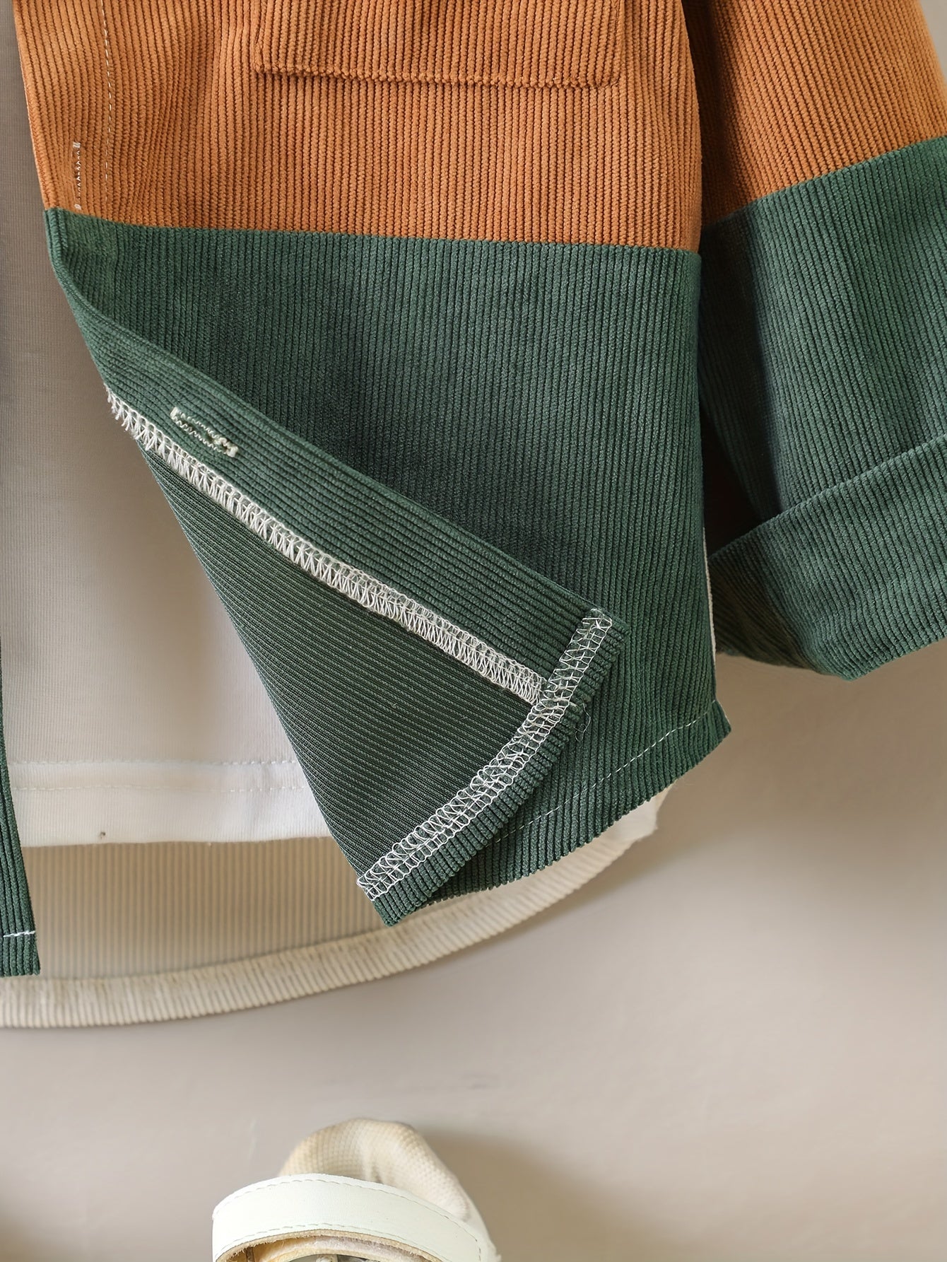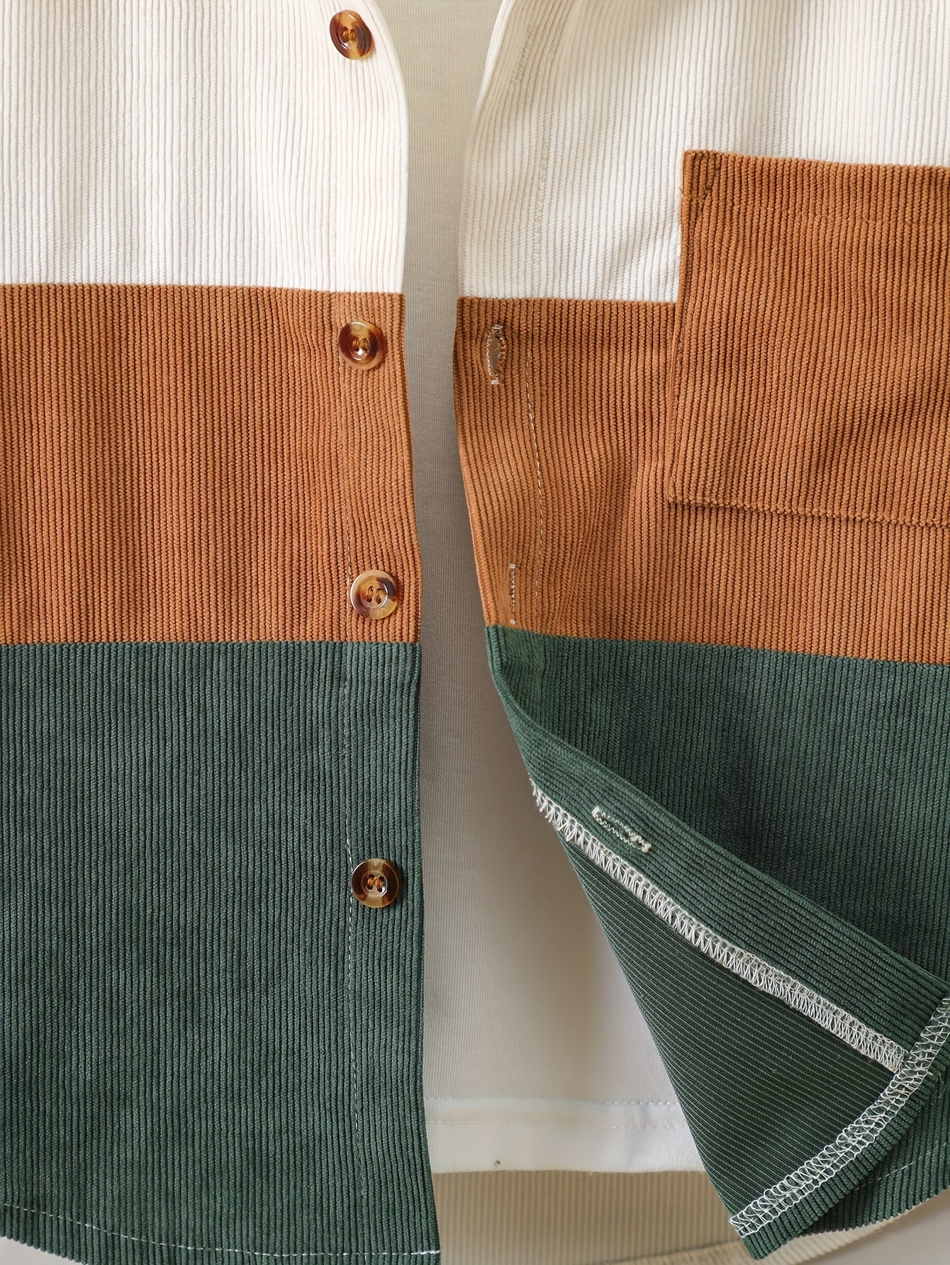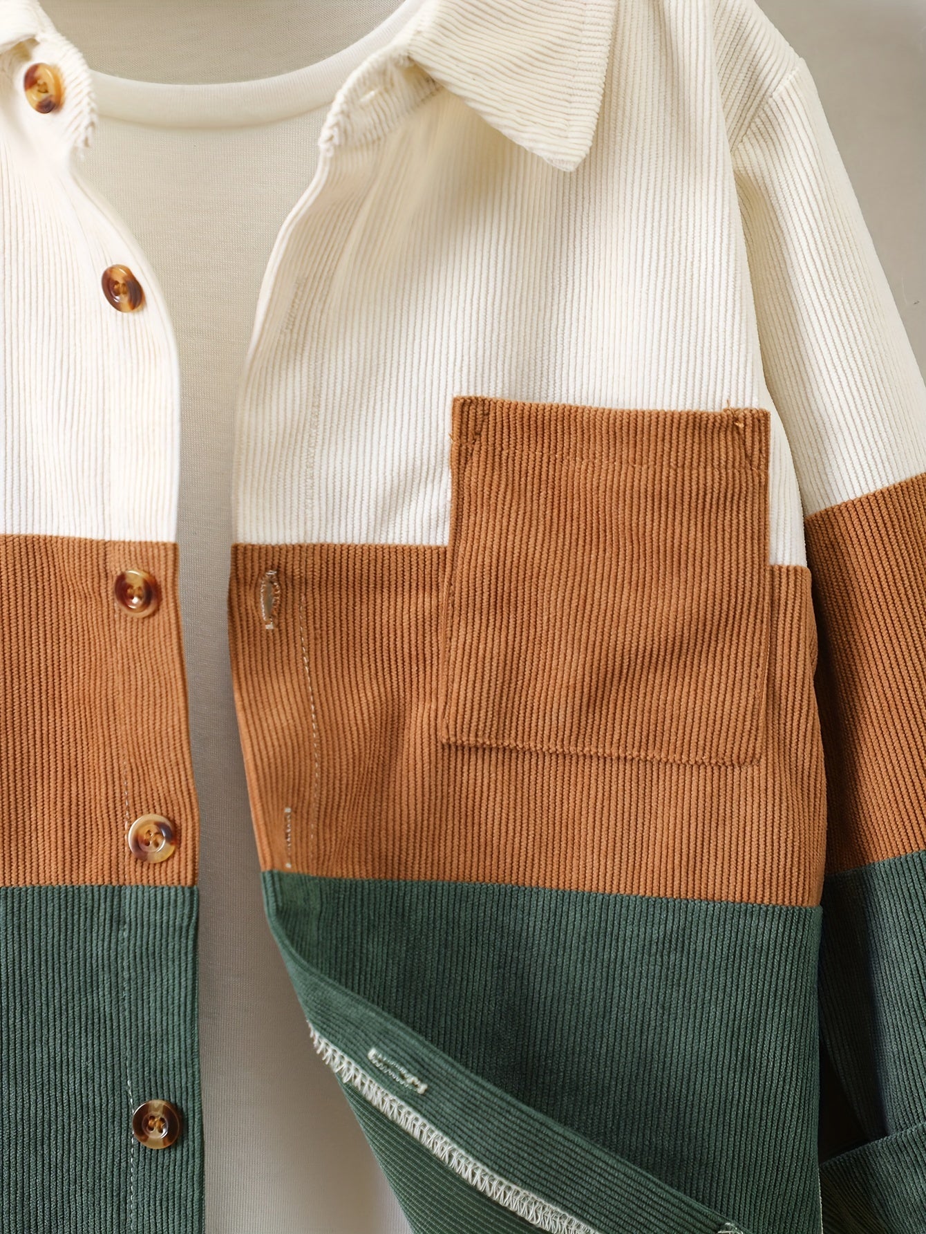 O'g'il bolalar uchun korduroy ko'ylak, uzun qo'l, rang-blok, kundalik, erkin o'lcham, cho'ntaklar, bahor va kuz