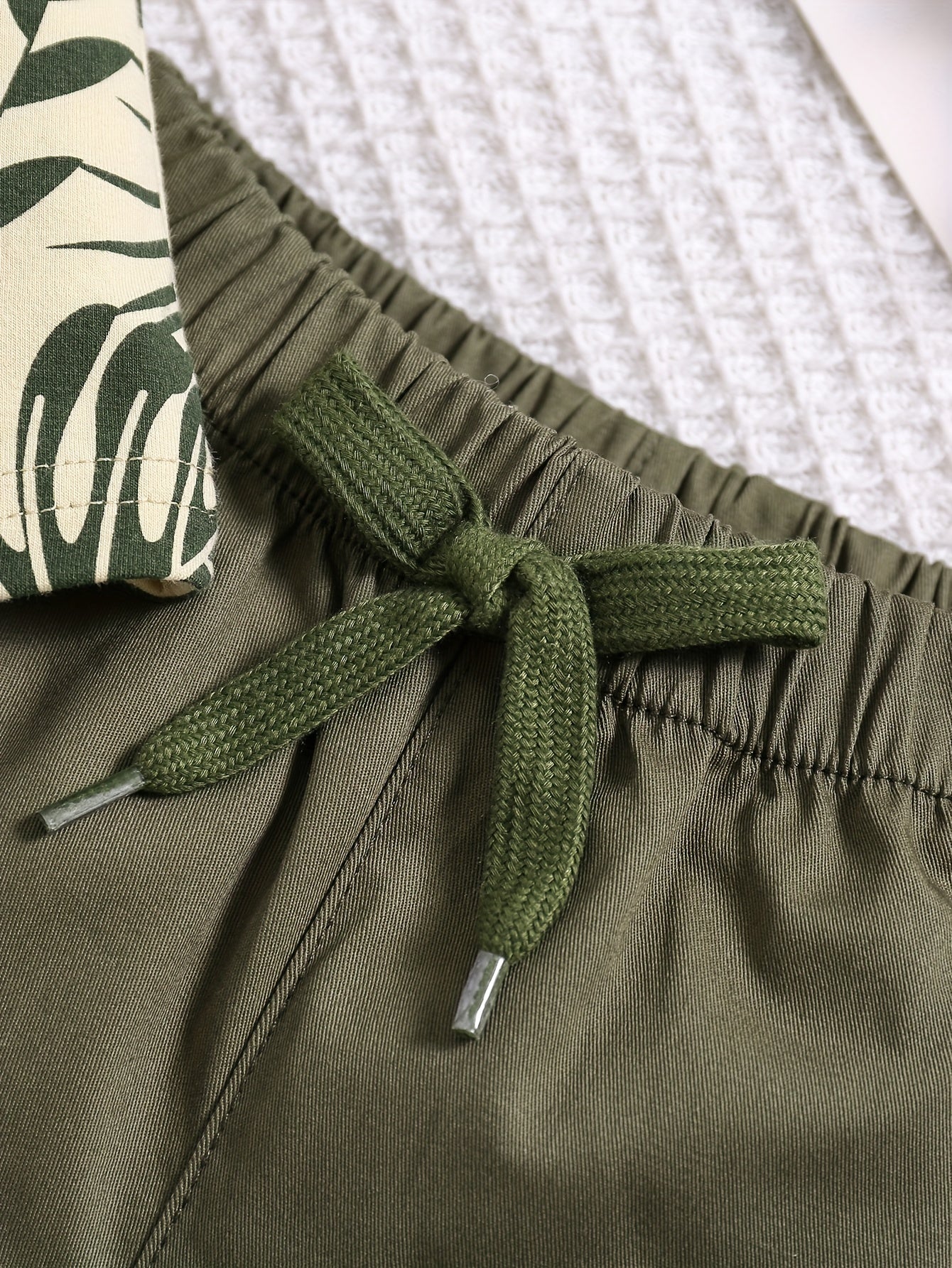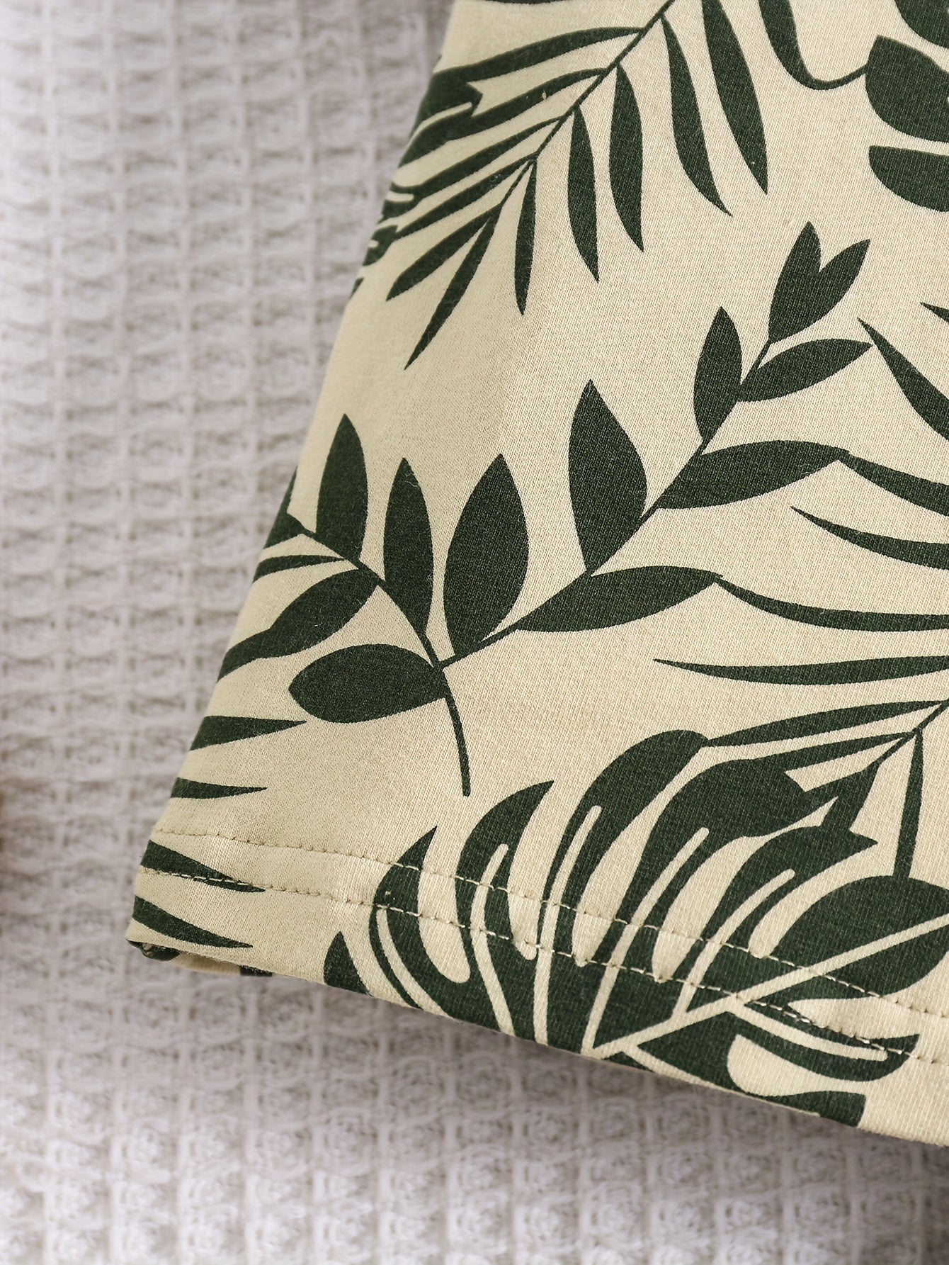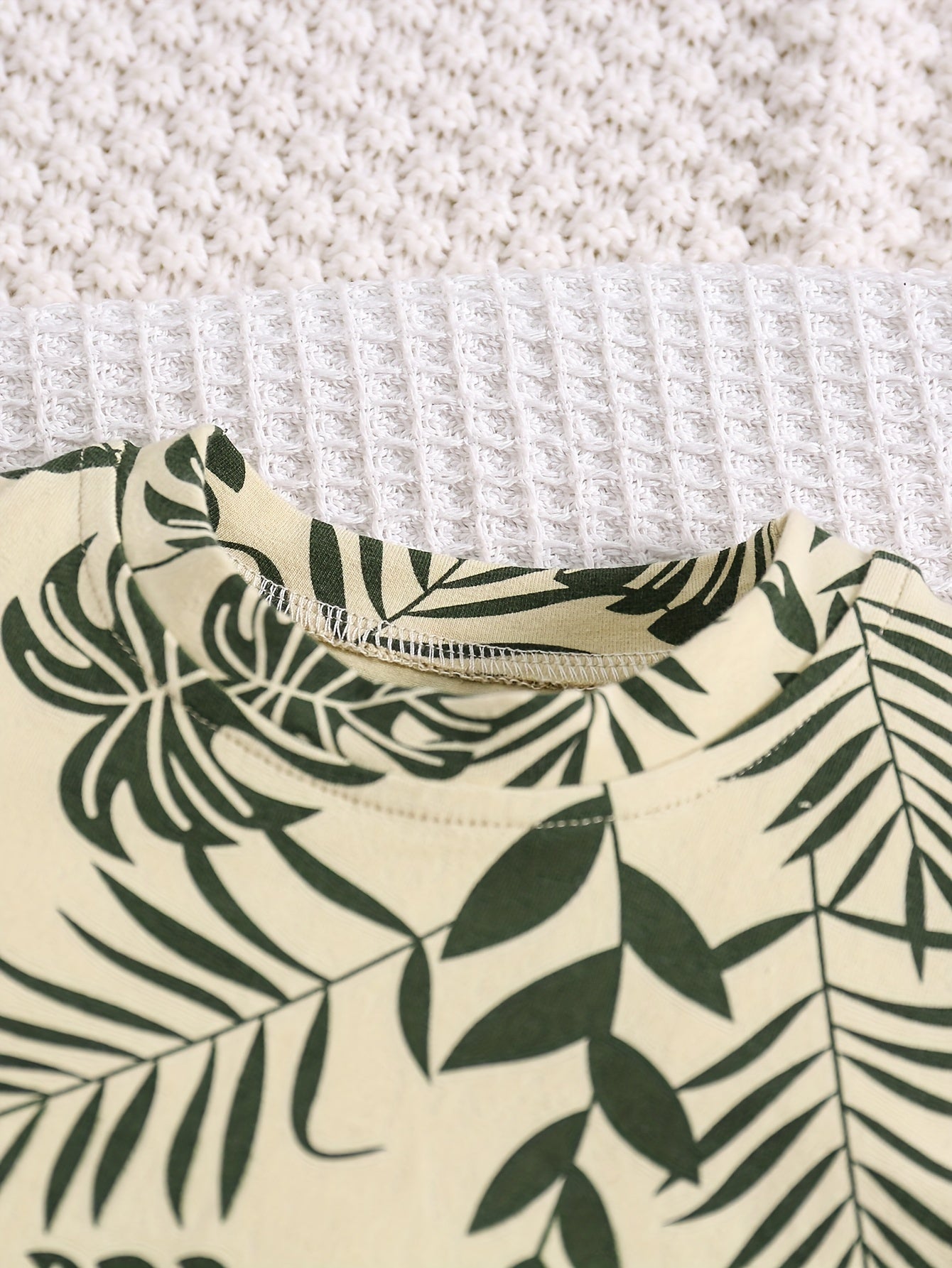 O'g'il bolalar uchun paxta bargi bosma kundalik kiyimlari, qisqa qo'lli T-shirt va chizilgan shortlar, bahor va yoz uchun