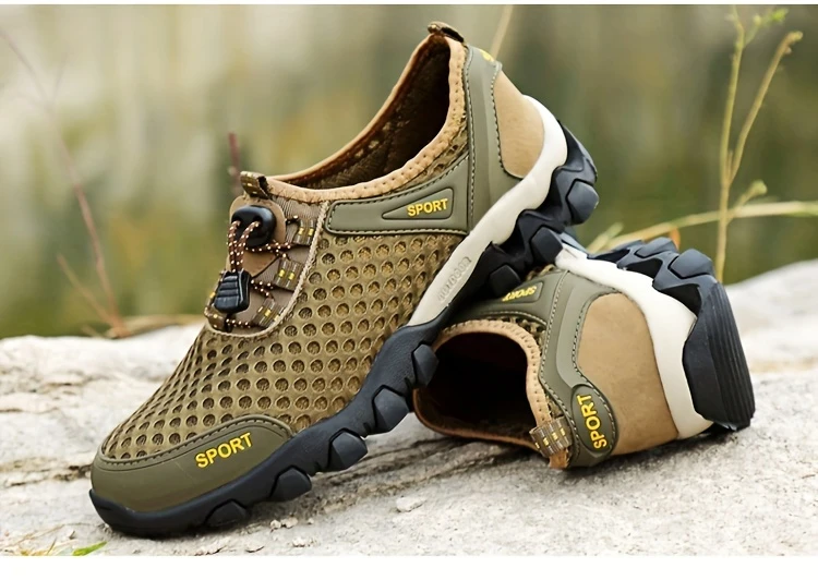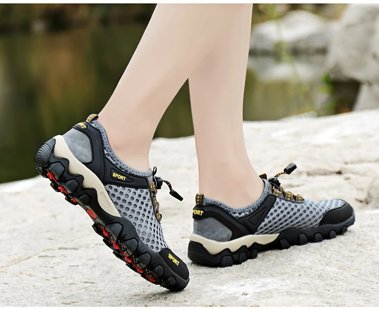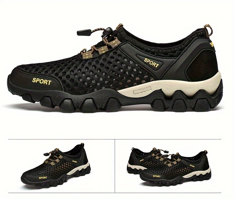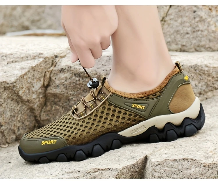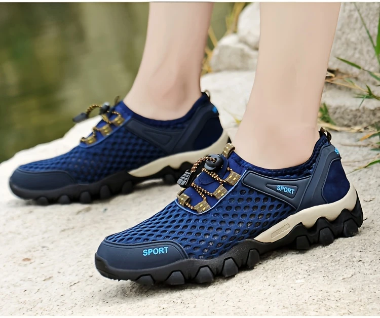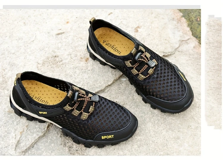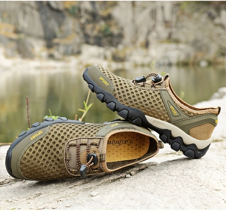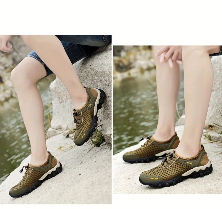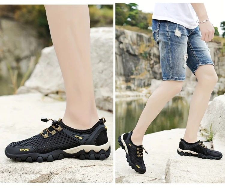 Havo o'tkazuvchi erkaklar yozgi sandallari ochiq havoda sport va suv faoliyatlari uchun bo'sh dizayn bilan.
