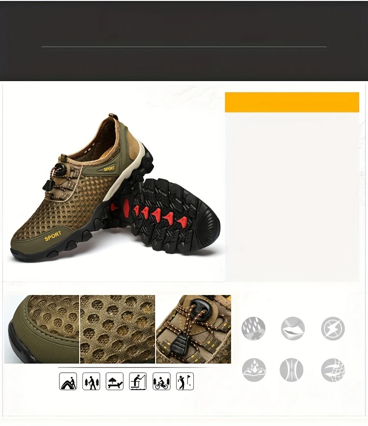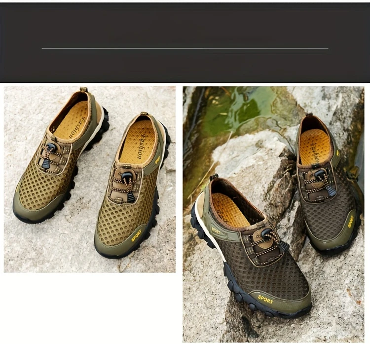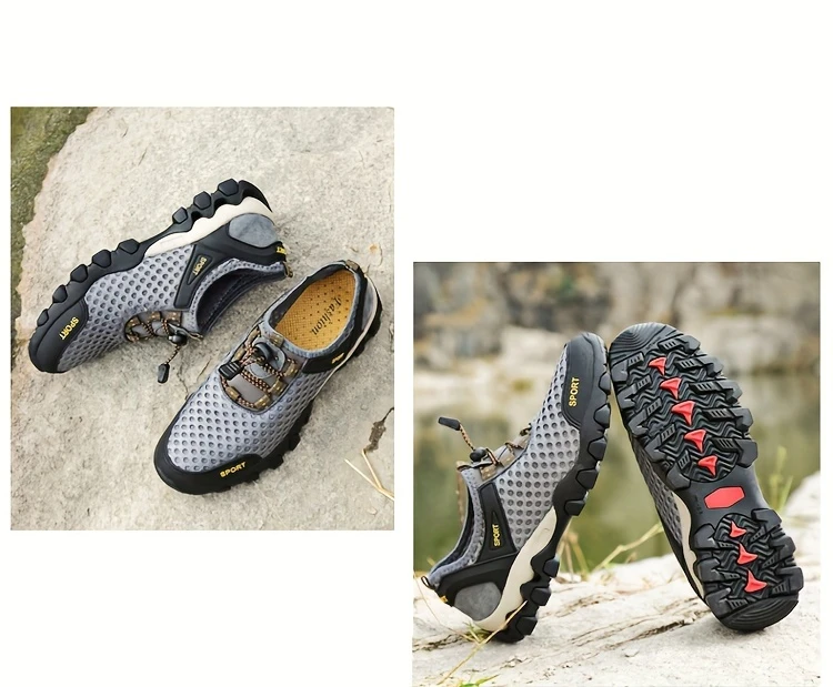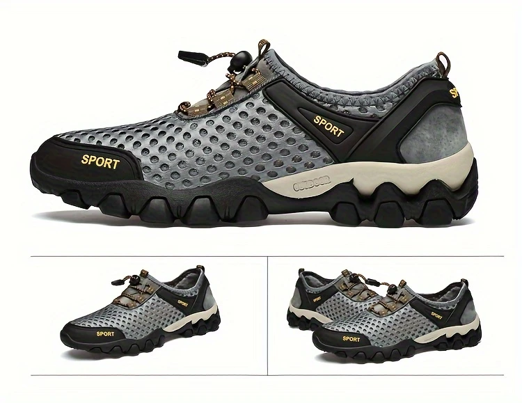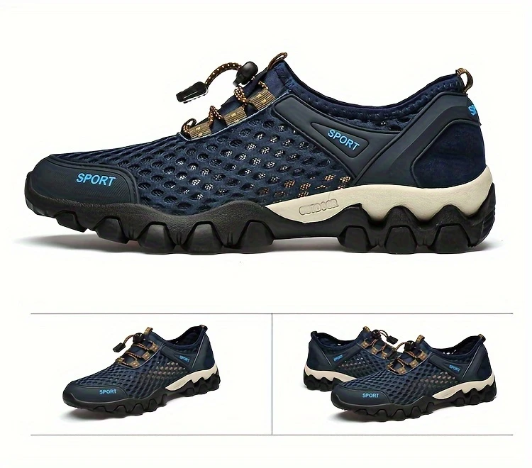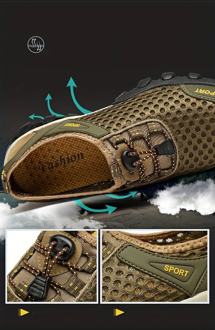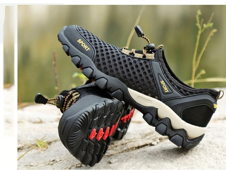 Havo o'tkazuvchi erkaklar yozgi sandallari ochiq havoda sport va suv faoliyatlari uchun bo'sh dizayn bilan.