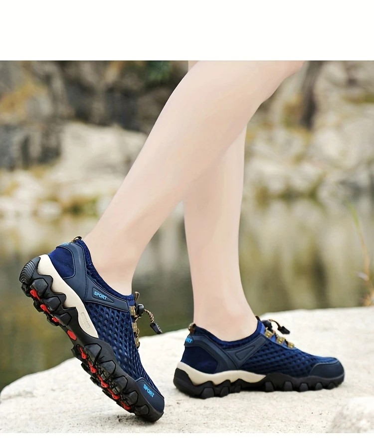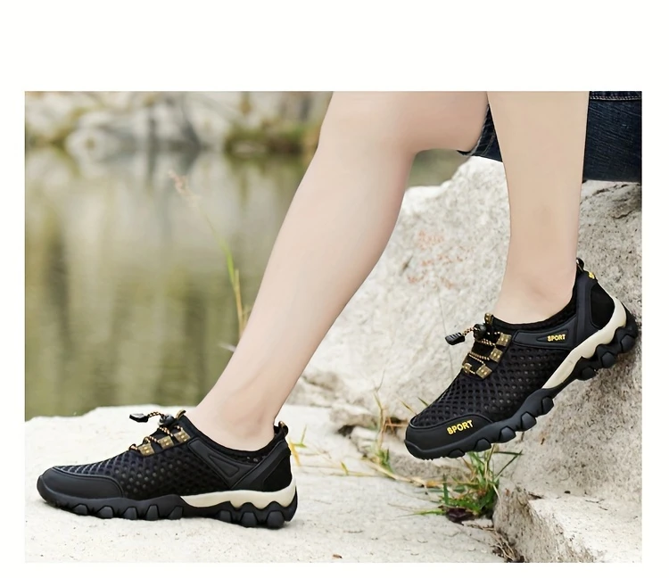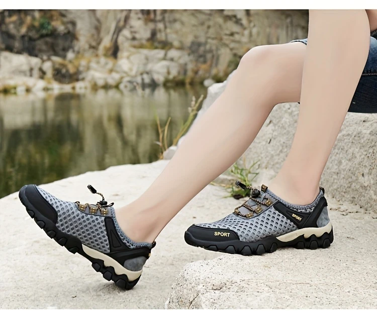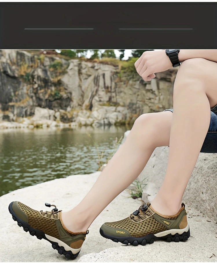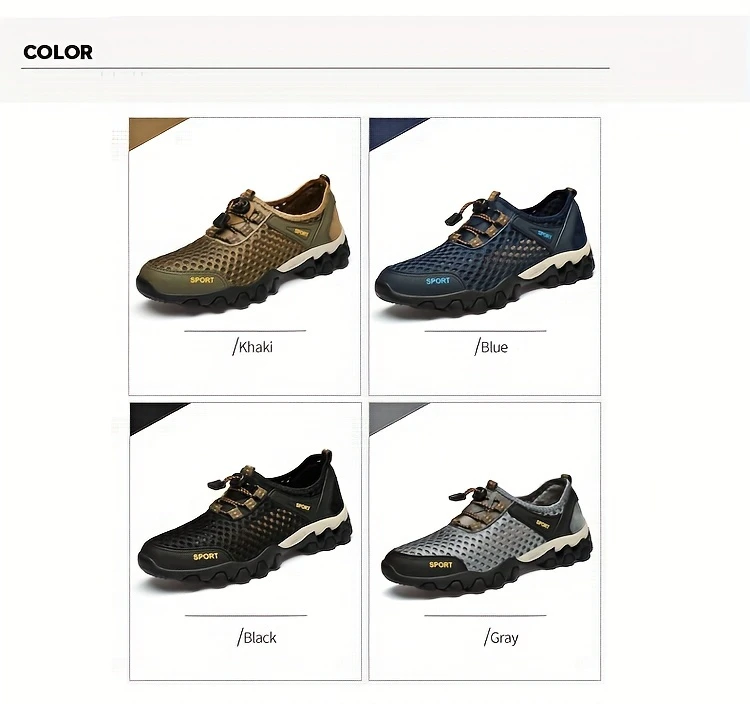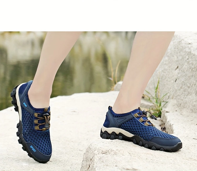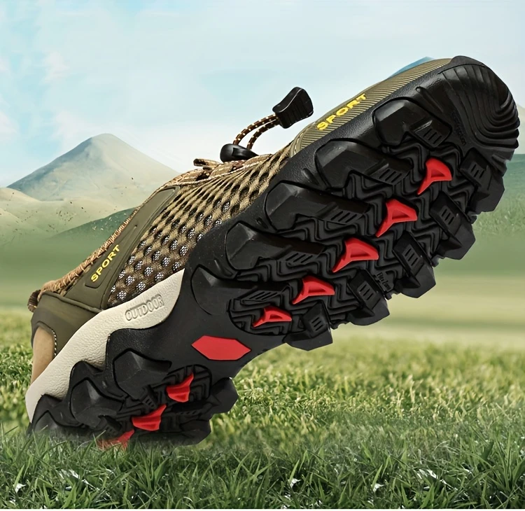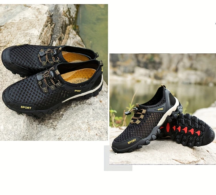 Havo o'tkazuvchi erkaklar yozgi sandallari ochiq havoda sport va suv faoliyatlari uchun bo'sh dizayn bilan.