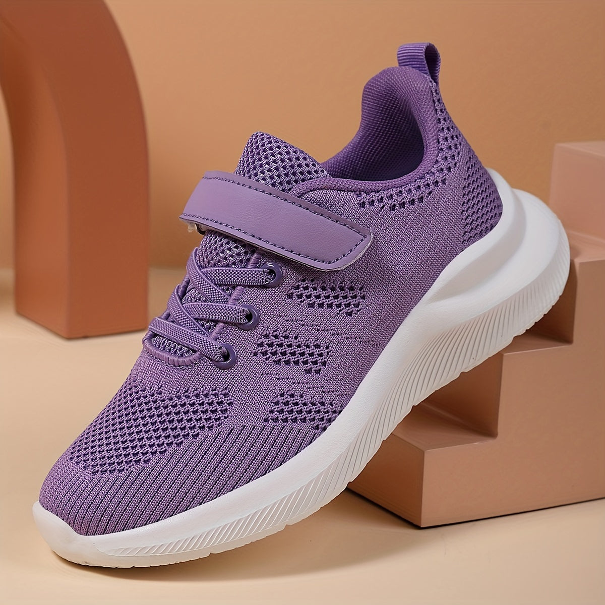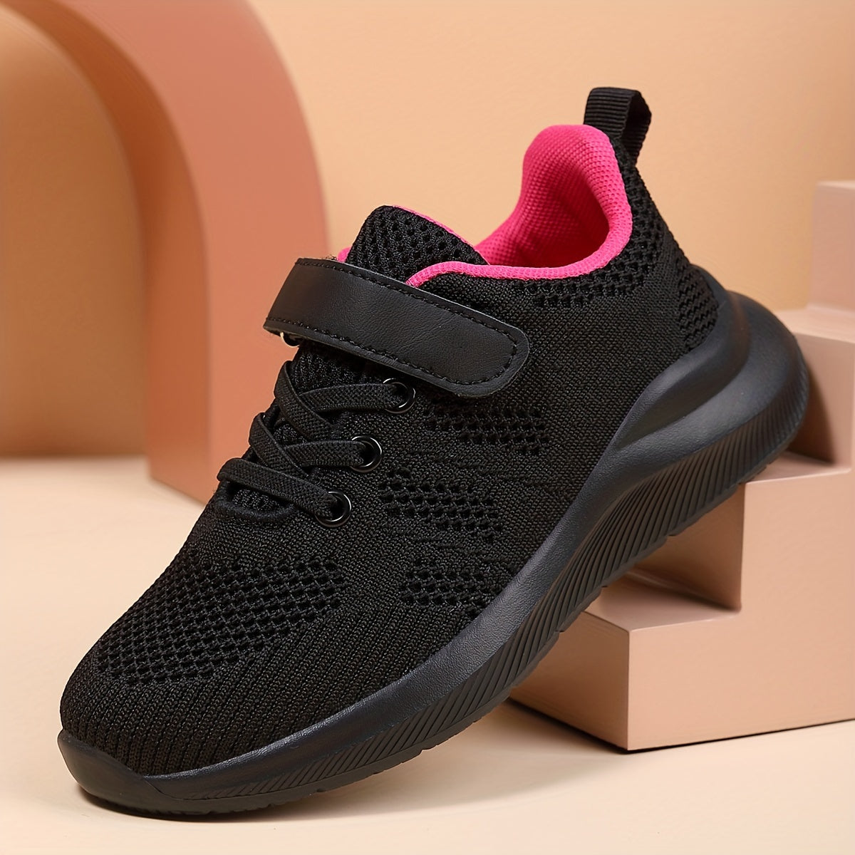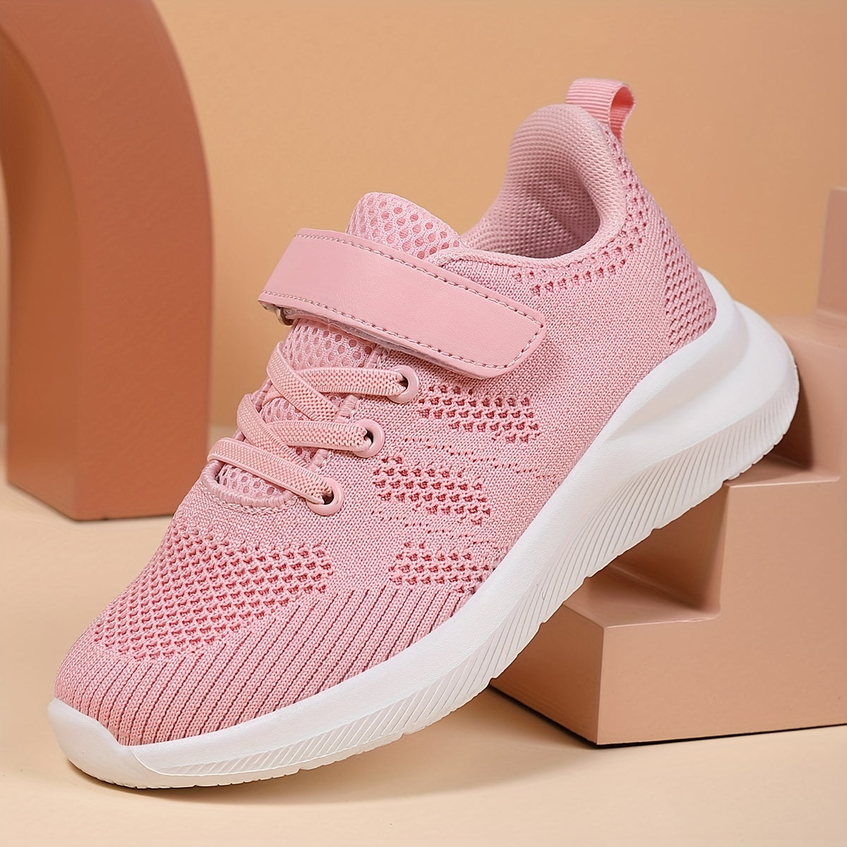 Bolalar uchun nafas oladigan yugurish poyabzallari, sirpanmaydigan qistirma bilan, kundalik kiyish va sport uchun mukammal, pushti rangda.