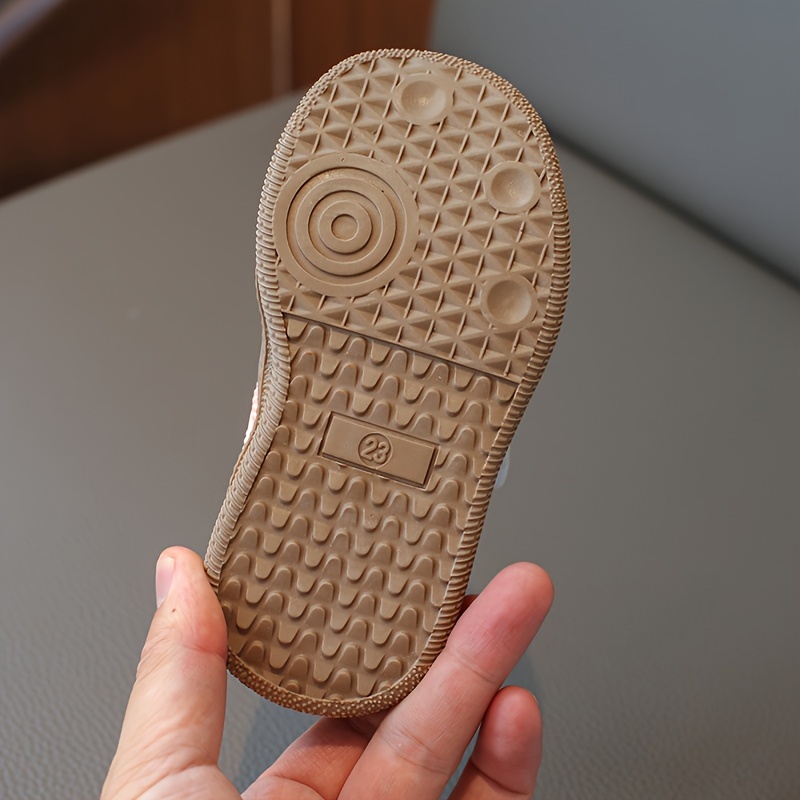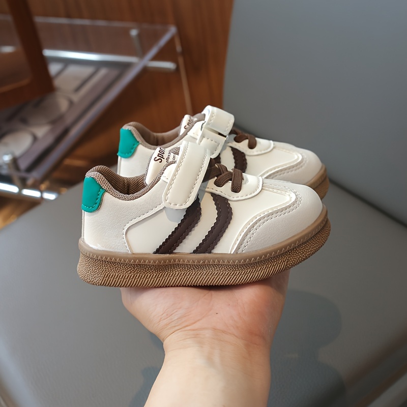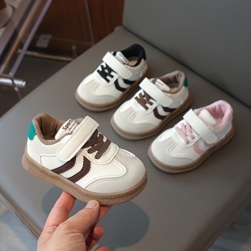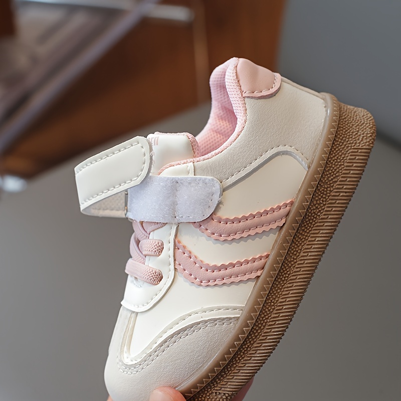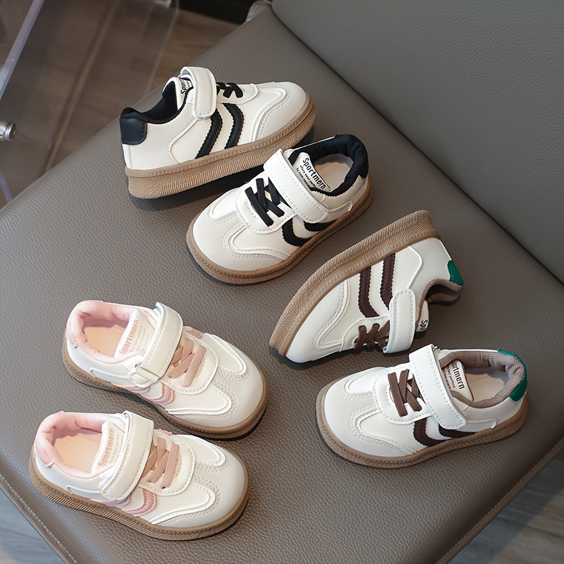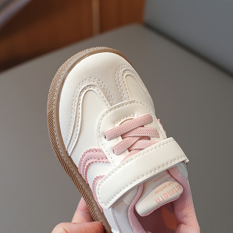 Havo o'tkazuvchi krossovkalar, yopishqoq yopish bilan, yumshoq bej va oq tagliklar. Bolalar uchun zamonaviy poyabzal, bahor va yozda norasmiy kiyim va ochiq havoda faoliyatlar uchun ideal.
