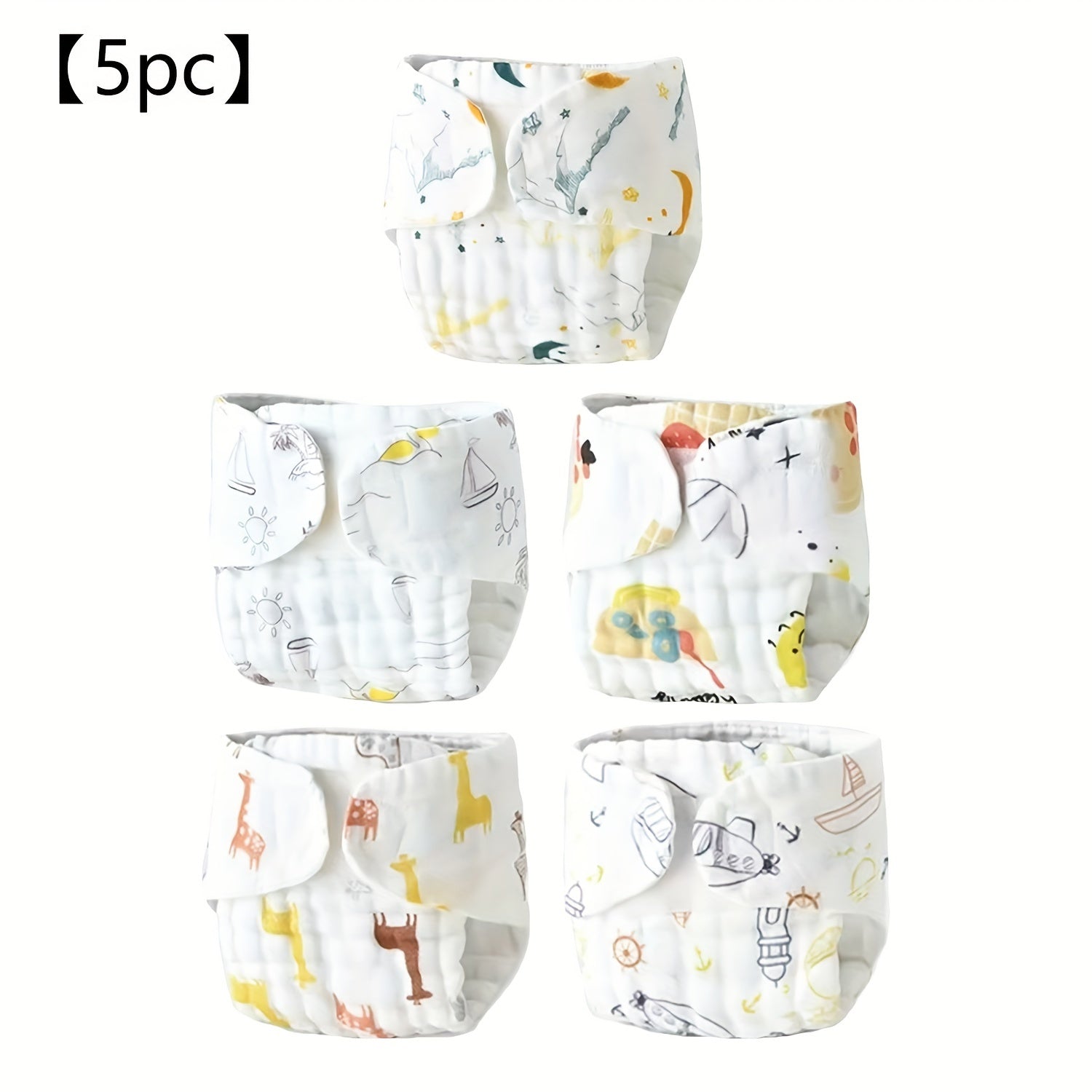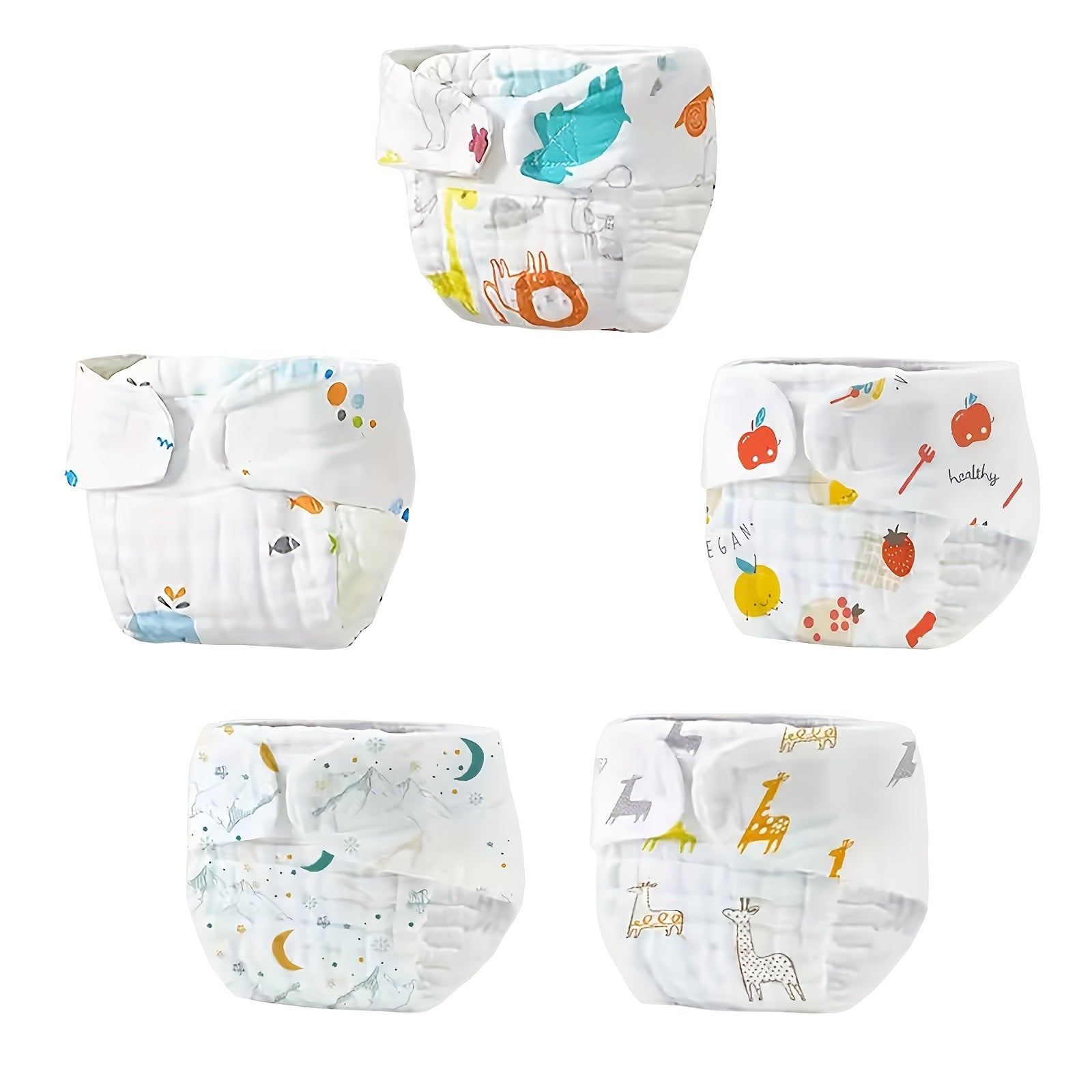Bolalar uchun qayta ishlatiladigan nafas oladigan hojatxona kiyimlari to'plami, 5 ta, 0-6 yosh uchun, oq va bosma