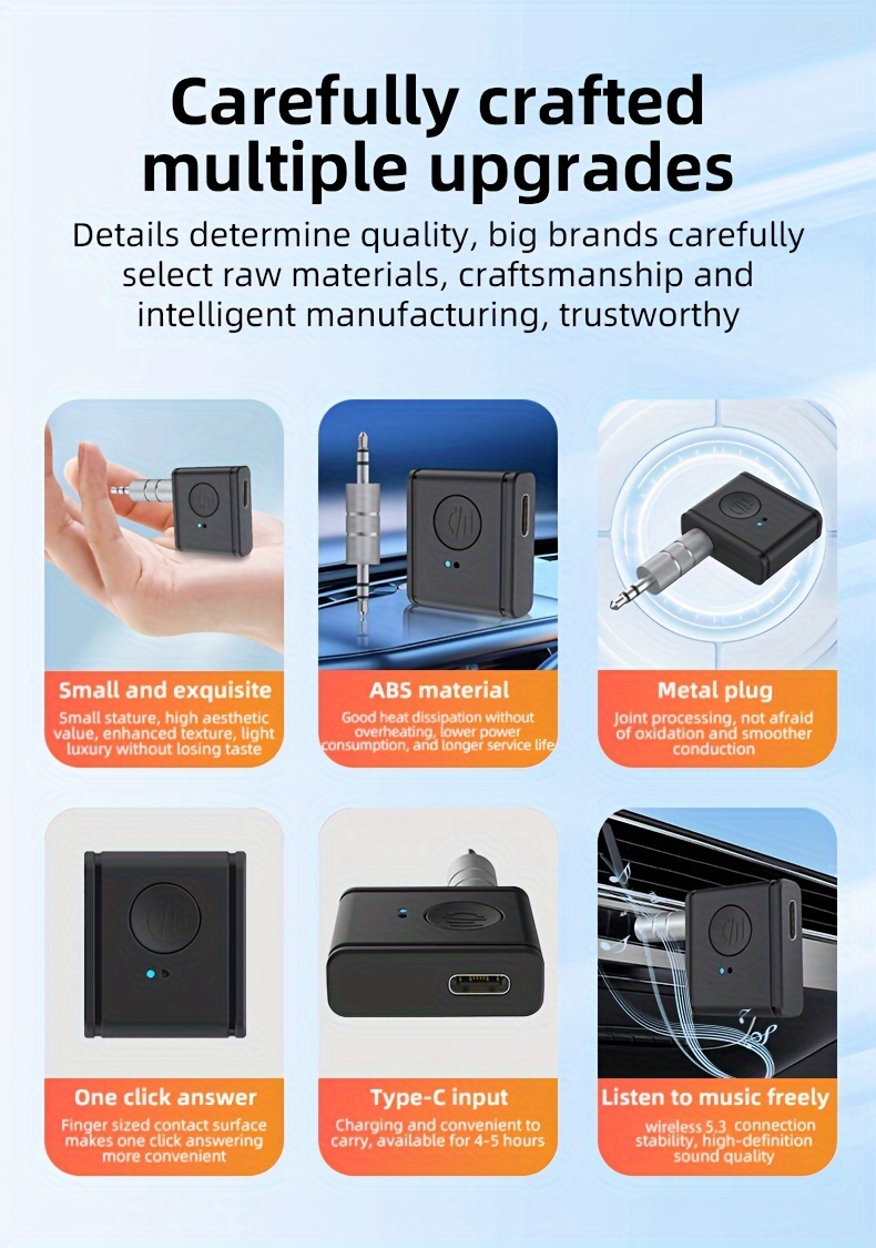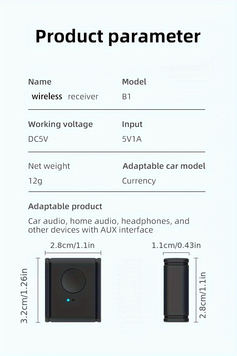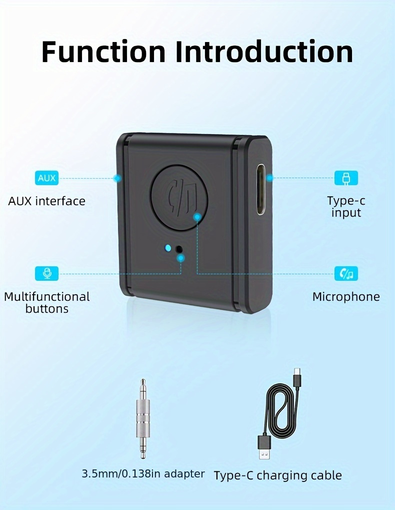 BT Wireless 5.3 AUX Mini Qabul qilgichi Uy/Avtomobil/Quloqchinlar uchun