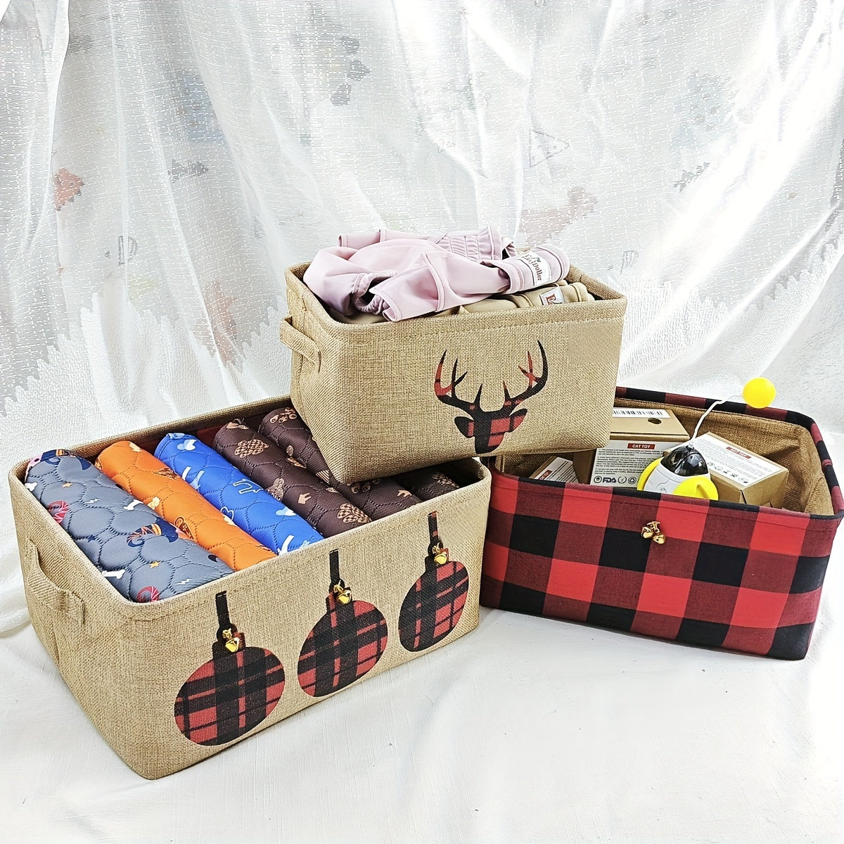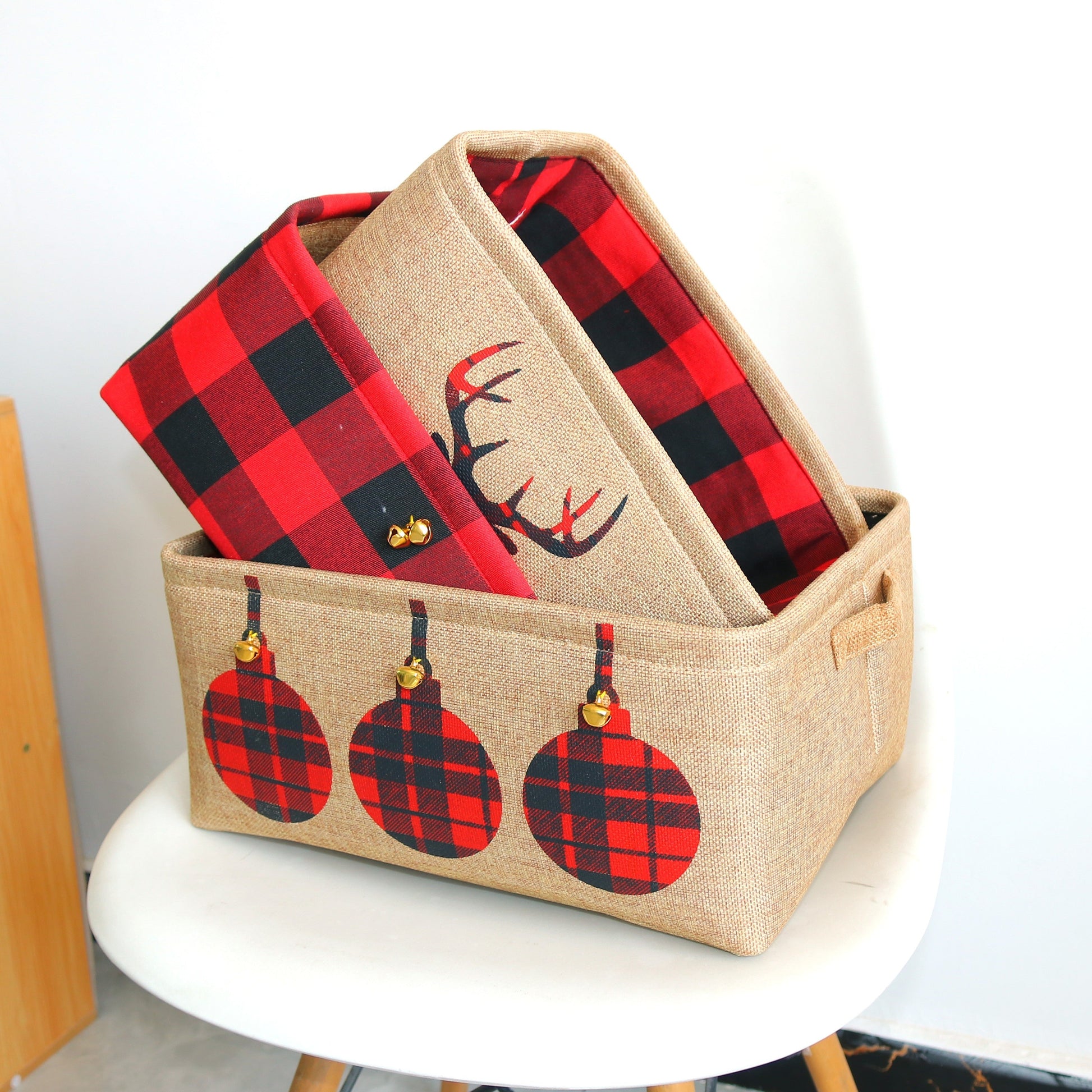 Rojdestvo kiyigi uchun oson yigʻiladigan, jingle kalitlari bilan taqdim etilgan qorqizlar saqlash savati, bayram sovgʻalari, o‘yinchoqlar
