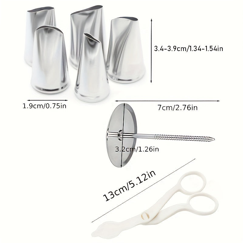 Tort bezash uchun to'plam 7 ta qism, zanglamaydigan po'latdan yasalgan shlyuzlar, gul ko'taruvchi, qirqish uchun qaychi