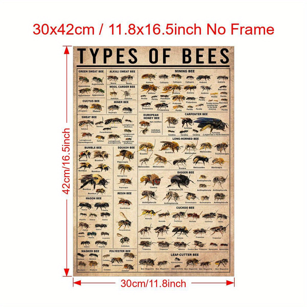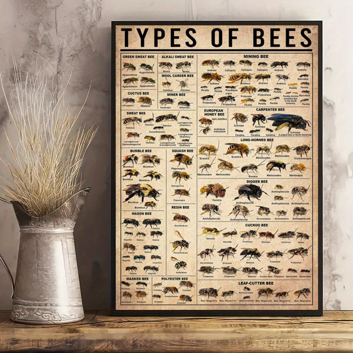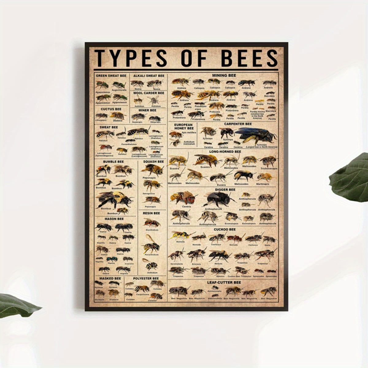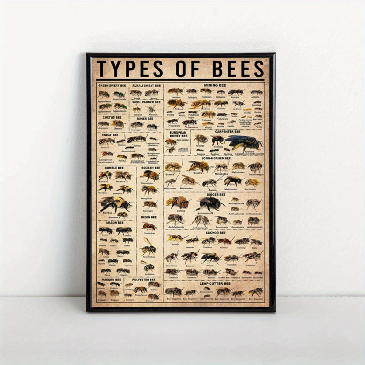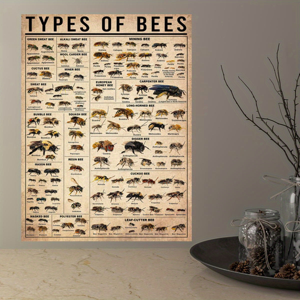 Oyna bo'lmagan zamonaviy hayvonlar bosma plakat bilan asalari va hasharotlar bilan devor san'ati plakati, yashash xonasi va yotoq xonasi uchun