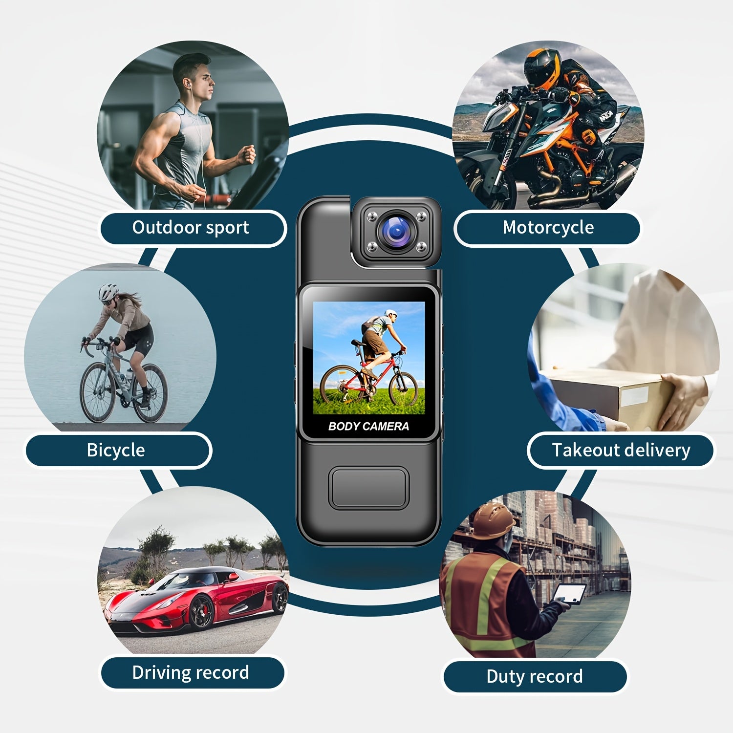 1080P HD Harakatli Sport Kamera 360° buriladigan linza bilan, kechqurun ko‘rish va uzoq batareya