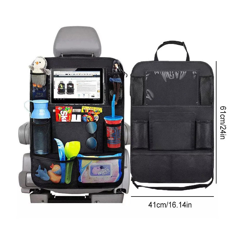 Bolalar va kichkina bolalar uchun stol tutuvchi va saqlash choʻntagi bilan avtomobil orqa o‘rindiq tashkilotchisi