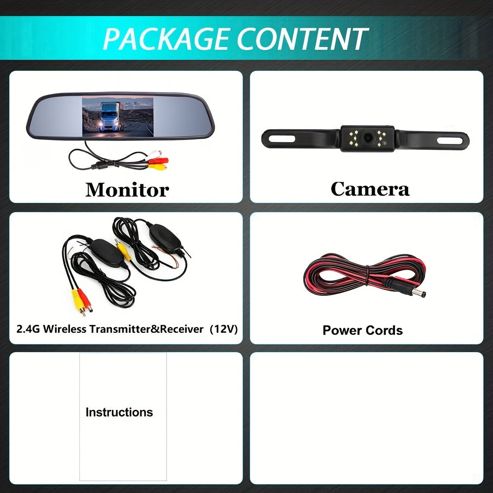 Avtomobil uchun orqa ko'rinish kamerasi, orqa ko'zgu to'plami, kechqurun ko'rish, keng burchak, oson o'rnatish