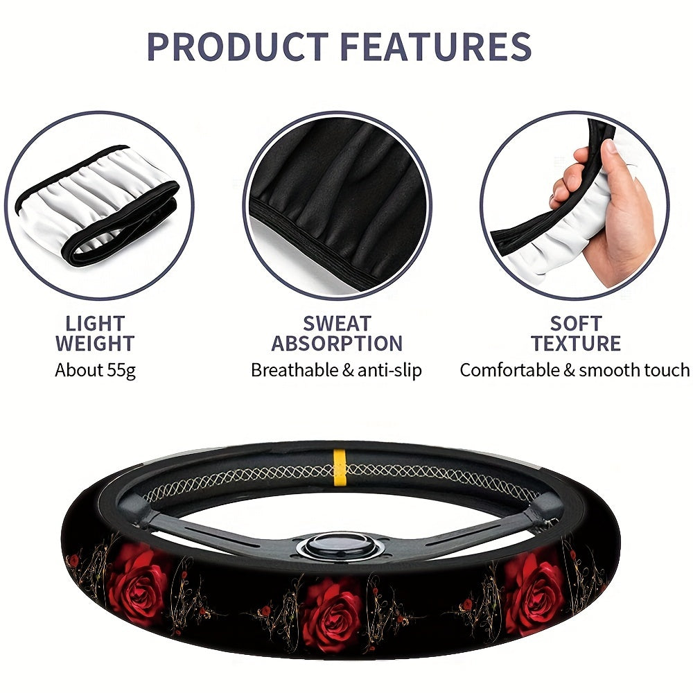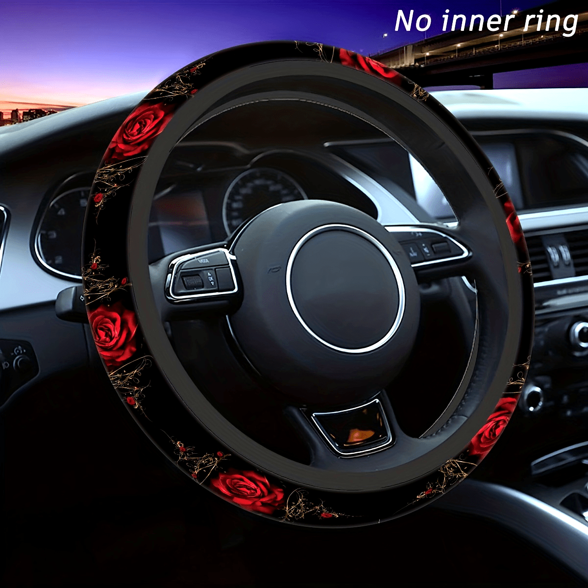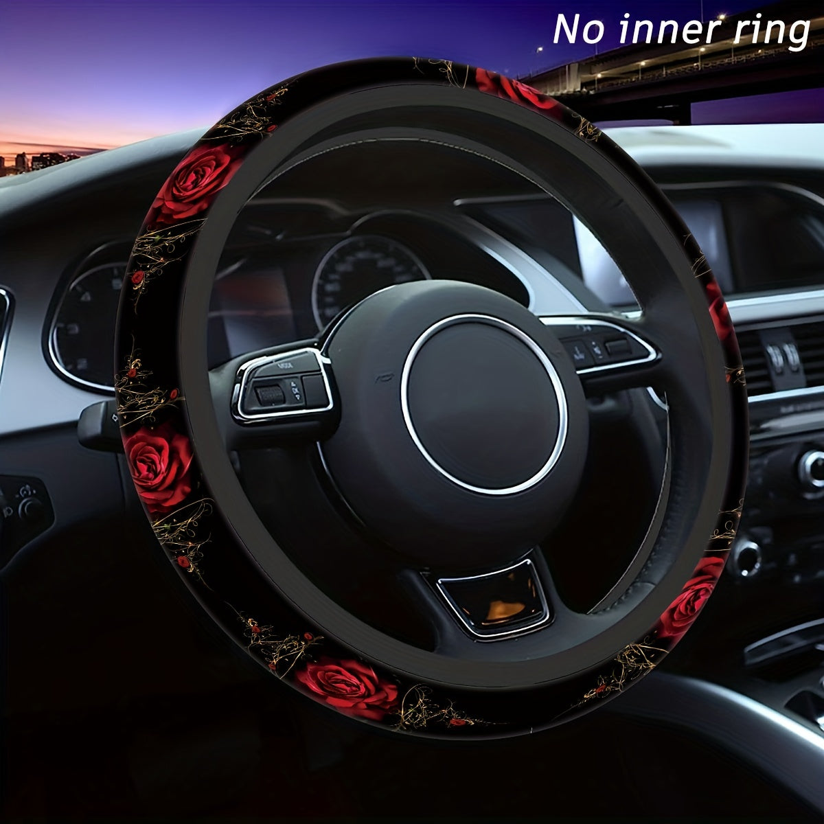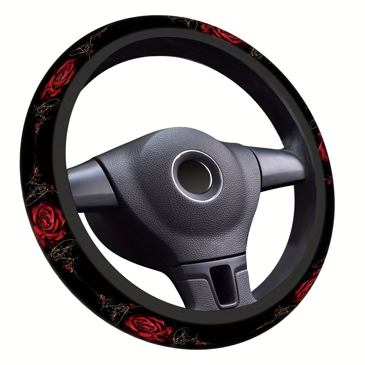 Avtomobil boshqaruv g'ildiragi qopqog'i Qizil gul bosimi Moda Universal mos keladi