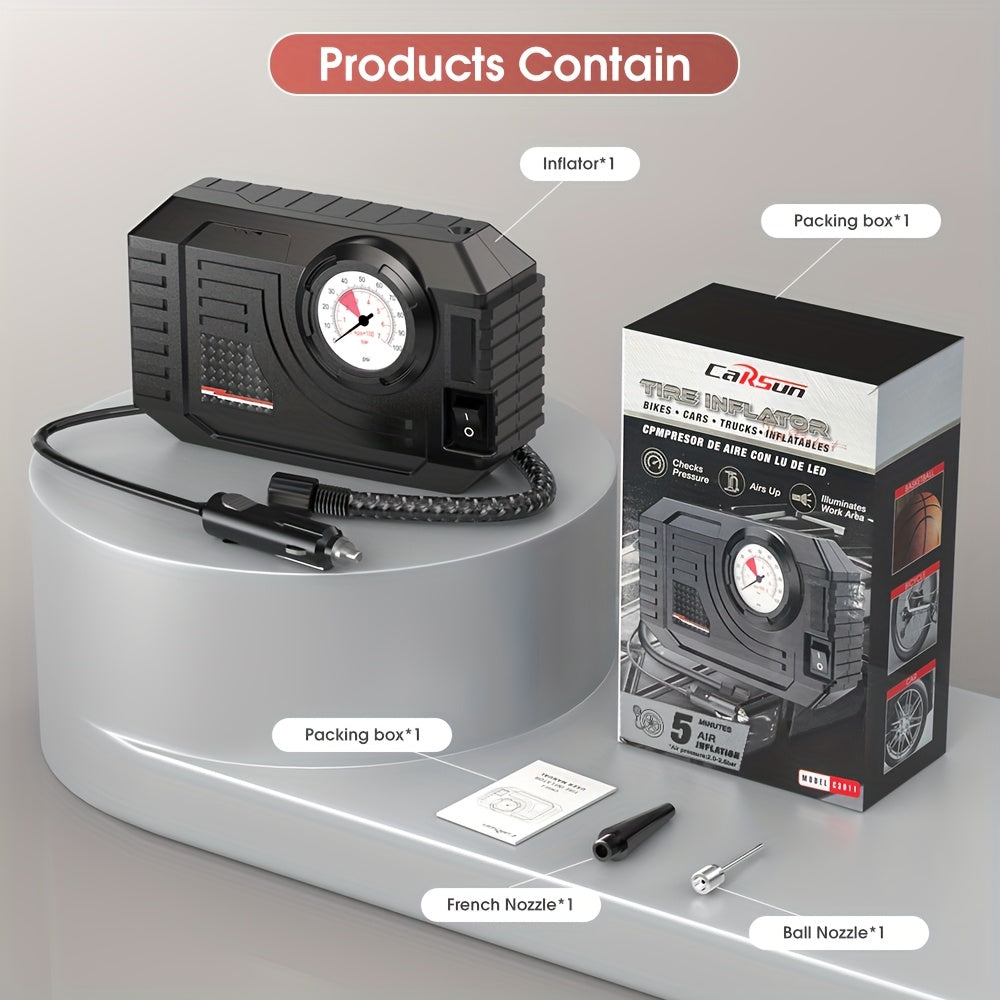 150PSI portativ avtomobil havo kompressori nasosi LED yoritgich bilan, bosimni sozlash imkoniyati bilan, avtomobil, mototsikl, velosiped uchun